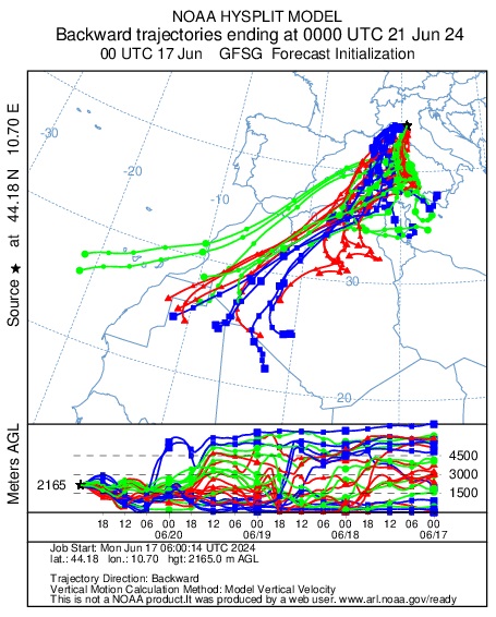 Nella grafica possiamo vedere chiaramente da dove sono arrivate le correnti d'aria che ora aleggiano sulla nostra testa.