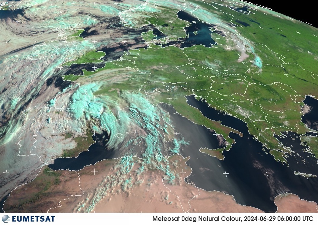 Ed eccoci, quindi, all'eloquente immagine satellitare di questa mattina che ci mostra chiaramente quanto sta accadendo: vortice ciclonico sulla Catalogna e alta pressione ad est su Balcani e Mediterraneo centrale.