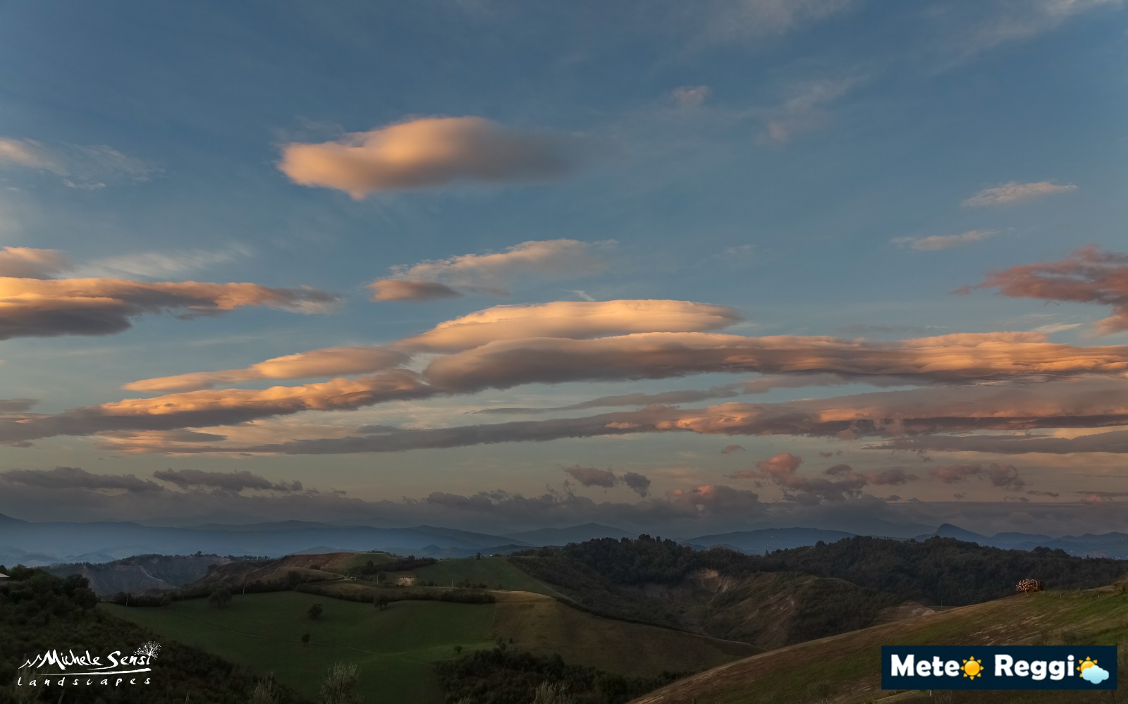 -> Nuvole lenticolari: Queste nuvole hanno una forma ellittica o a disco e si dispongono in serie parallele lungo le onde atmosferiche. Possono sembrare sospese nel cielo senza movimento, anche se il vento continua a scorrere.