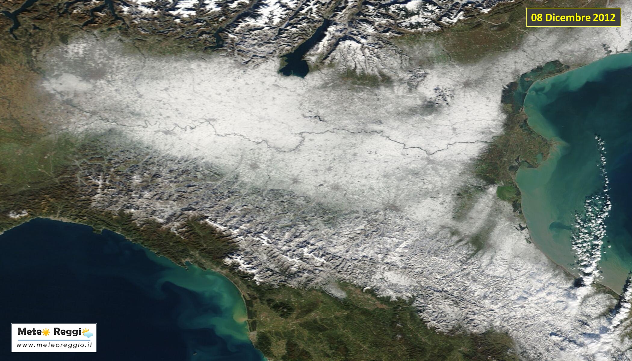 Sicuramente non vedremo uno scatto satellitare del genere quest'anno, ma magari un po' di bianco anche in Pianura verso ovest, chissà...