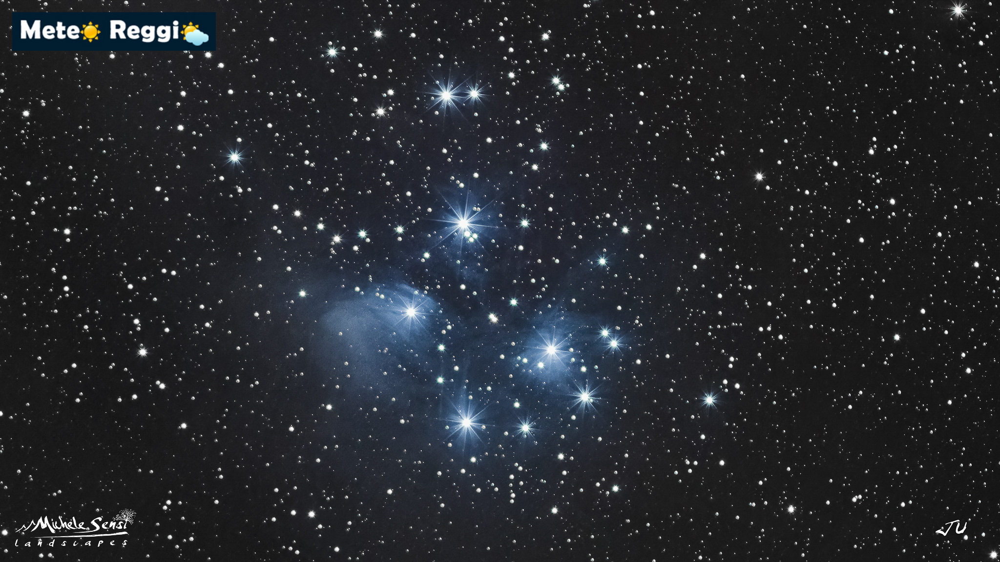Le Pleiadi, conosciute anche come "le Sette Sorelle," sono un ammasso stellare aperto nella costellazione del Toro, visibile a occhio nudo e noto fin dall'antichità. Una curiosità affascinante è che le stelle più luminose dell'ammasso hanno ciascuna un nome che si riferisce alle sette figlie di Atlante e Pleione nella mitologia greca: Alcyone, Maia, Electra, Taygeta, Asterope, Celaeno e Merope.