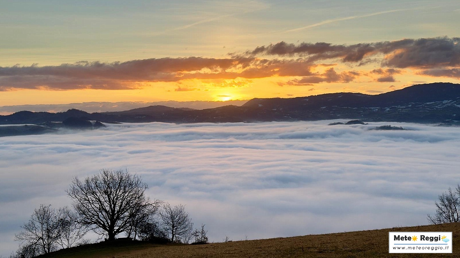 La distesa bianca visibile e che riempie la valle del Secchia è un fenomeno noto come "mare di nebbia". Si forma tipicamente durante le notti fredde e serene.