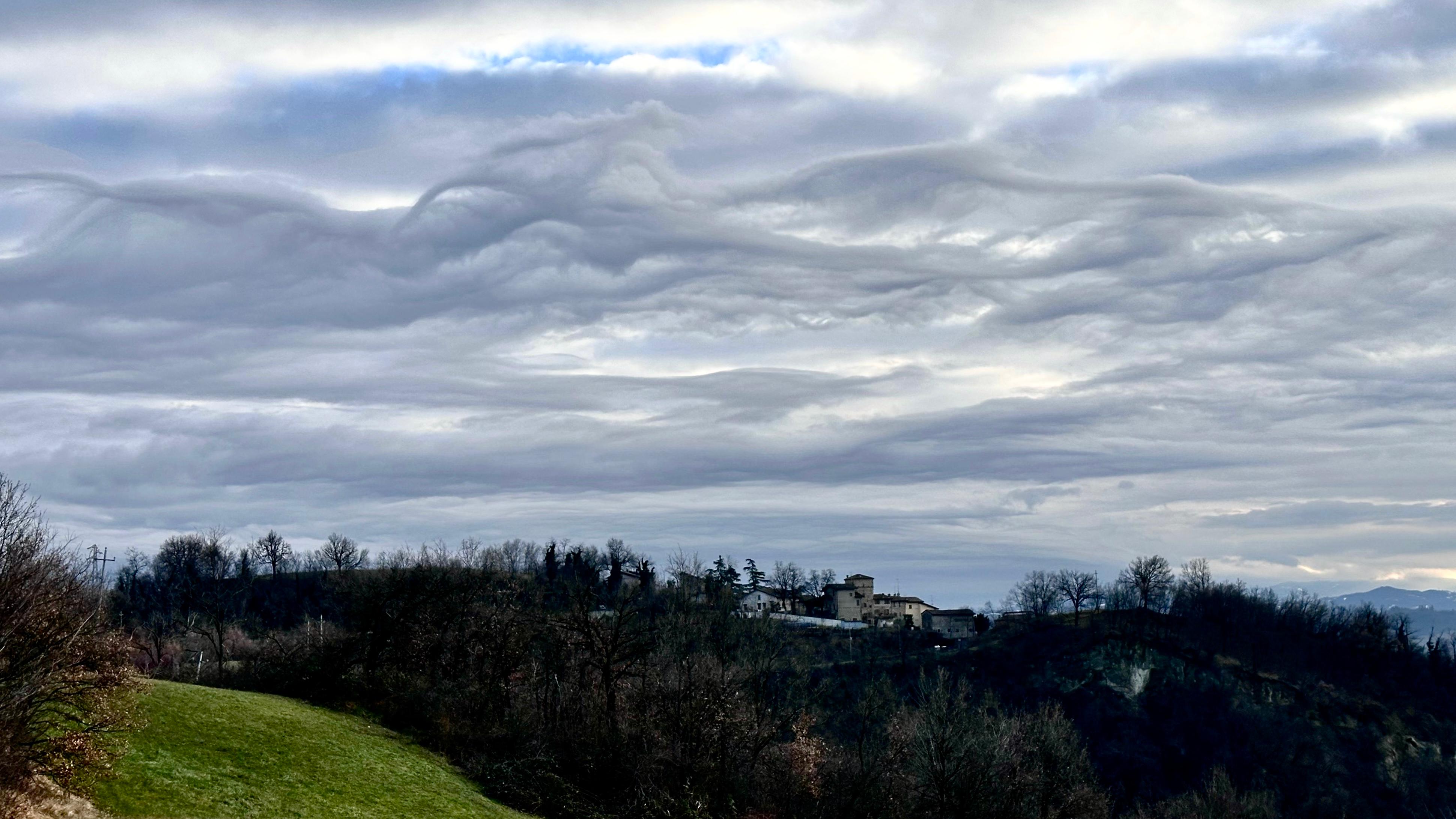 Le "ondulazioni" nelle nuvole, infatti, indicano che l'atmosfera è soggetta a onde di gravità atmosferiche, generate da ostacoli naturali (come colline o montagne) o da gradienti di vento. Questo fenomeno crea i pattern ondulati.