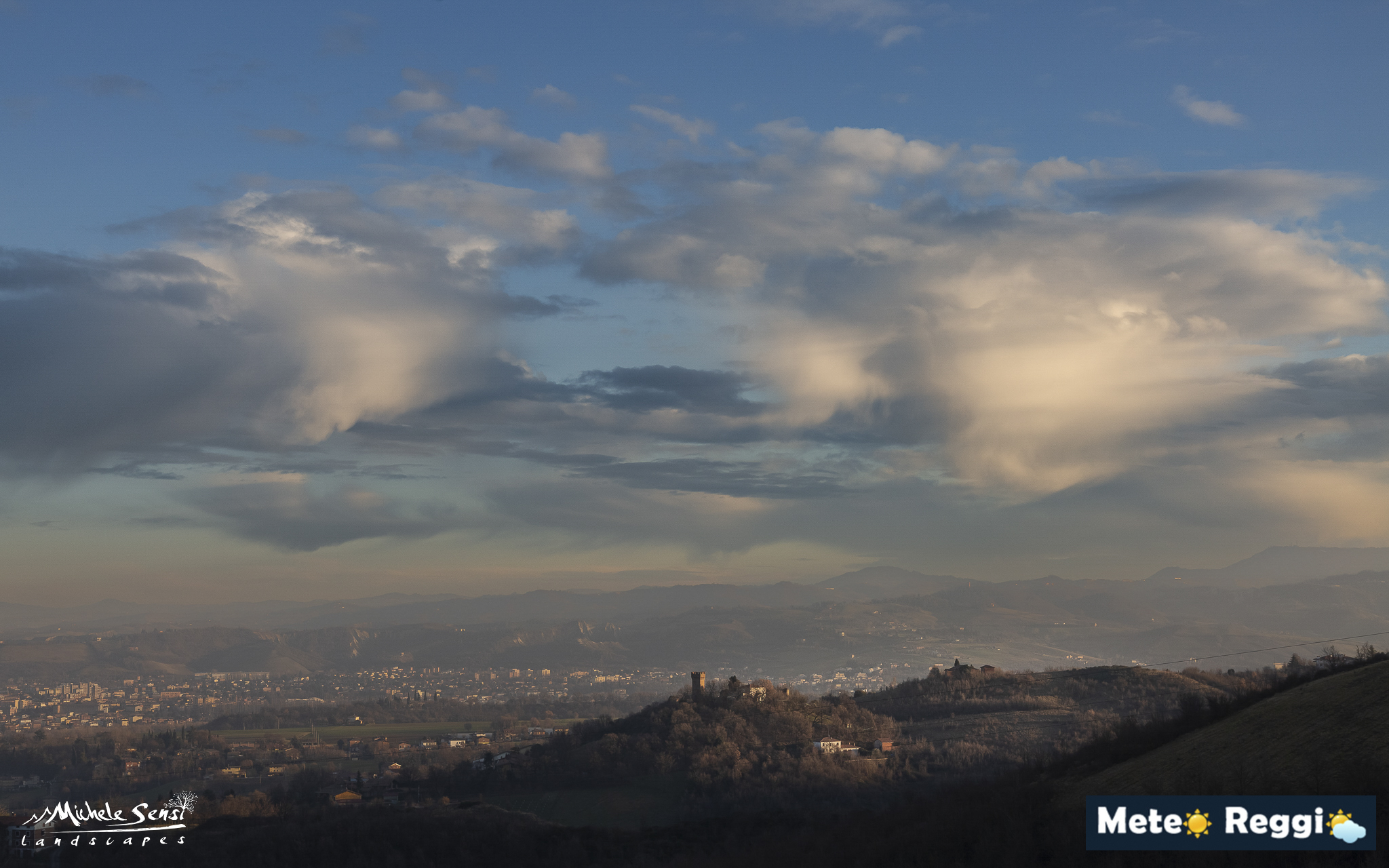 In questa immagine catturata al tramonto possiamo apprezzare un accessorio curioso che possono presentare alcune nuvole. Stiamo parlando del fenomeno delle virghe (latino virga, "verga, ramo").