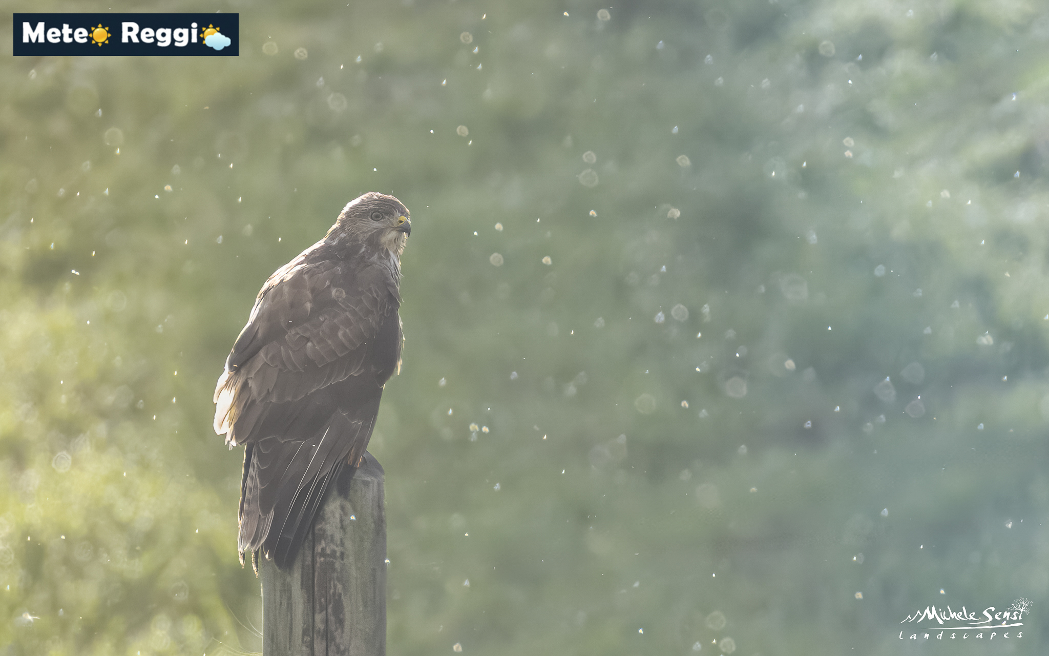 Se le penne si bagnano troppo, diventano più pesanti e meno efficienti per il volo. Per questo motivo, molti rapaci preferiscono non cacciare sotto la pioggia battente. Tuttavia, alcuni, come le poiane e gli sparvieri, possono comunque volare e cacciare sotto una pioggia leggera, proprio come la Poiana in questa immagine.