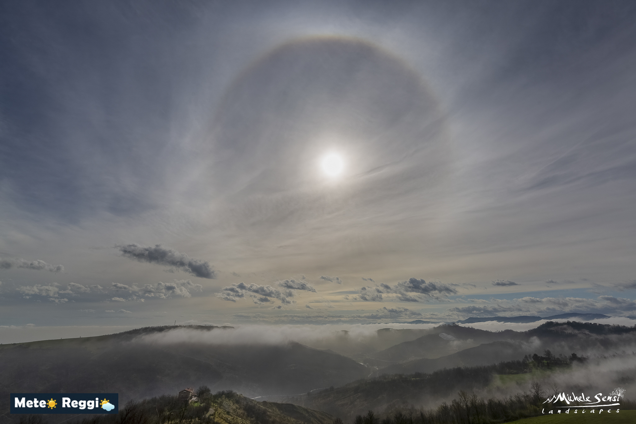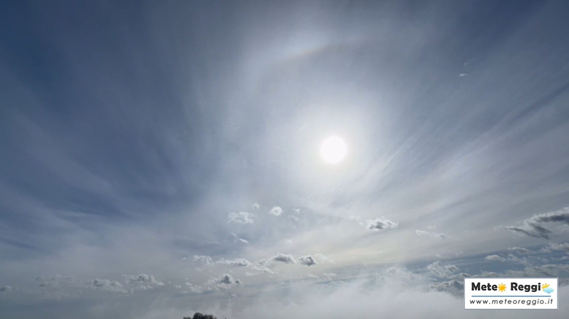 L'alone solare a 22°C è sempre uno spettacolo affascinante. Un Sole lattiginoso avvolto da sfumature chiare e scure. L'effetto per cui il cielo all'interno dell'alone solare a 22° appare più scuro rispetto all'esterno è dovuto alla rifrazione e dispersione della luce nei cristalli di ghiaccio presenti nelle nubi alte, in particolare nei cirrostrati. L'alone si forma quando la luce solare attraversa i cristalli di ghiaccio sospesi nelle nubi alte. La luce viene rifratta due volte, entrando ed uscendo dai cristalli, con un angolo minimo di deviazione di circa 22° rispetto alla direzione originale del raggio solare. Questo significa che la luce solare viene concentrata a partire dai 22° di distanza dal Sole, formando il cerchio luminoso. - Oscuramento interno Poiché la luce è deviata verso l'anello luminoso, c'è meno luce diffusa nella regione centrale rispetto all'esterno. Il risultato è un effetto visivo in cui il cielo appare più scuro all'interno dell'alone rispetto a quello esterno, che continua a ricevere luce diffusa. Questo fenomeno è analogo all'oscuramento che si osserva anche negli arcobaleni, dove la zona interna del cerchio può apparire più scura per la minore diffusione della luce. L'intensità dell'oscuramento dipende dalla quantità e dalla disposizione dei cristalli di ghiaccio nell'atmosfera. - L'alone solare è spesso un segnale di umidità in quota e può anticipare l'arrivo di un fronte caldo o perturbazioni nelle 24-48 ore successive. Se oggi vedete un alone solare, potrebbe essere il preludio a un peggioramento del tempo nei prossimi giorni!