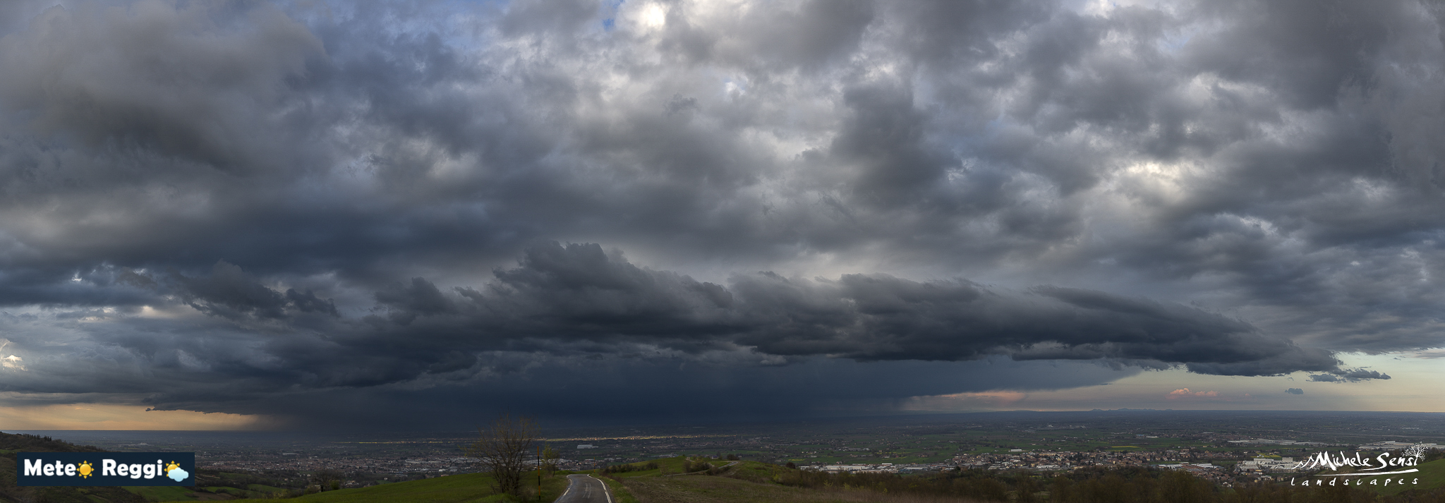 Quella che vedete in primo piano nella foto è una Shelf Cloud (nube a mensola), un tipo di nube accessoria associata ai temporali forti, spesso situata davanti a un Cumulonembo.