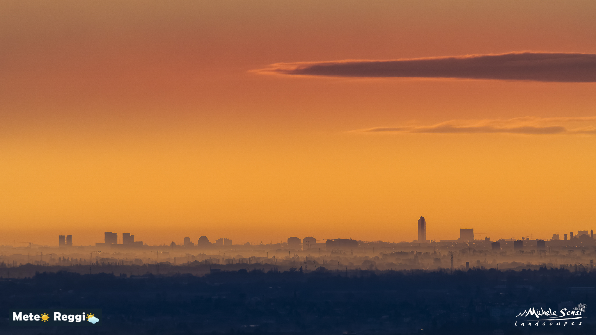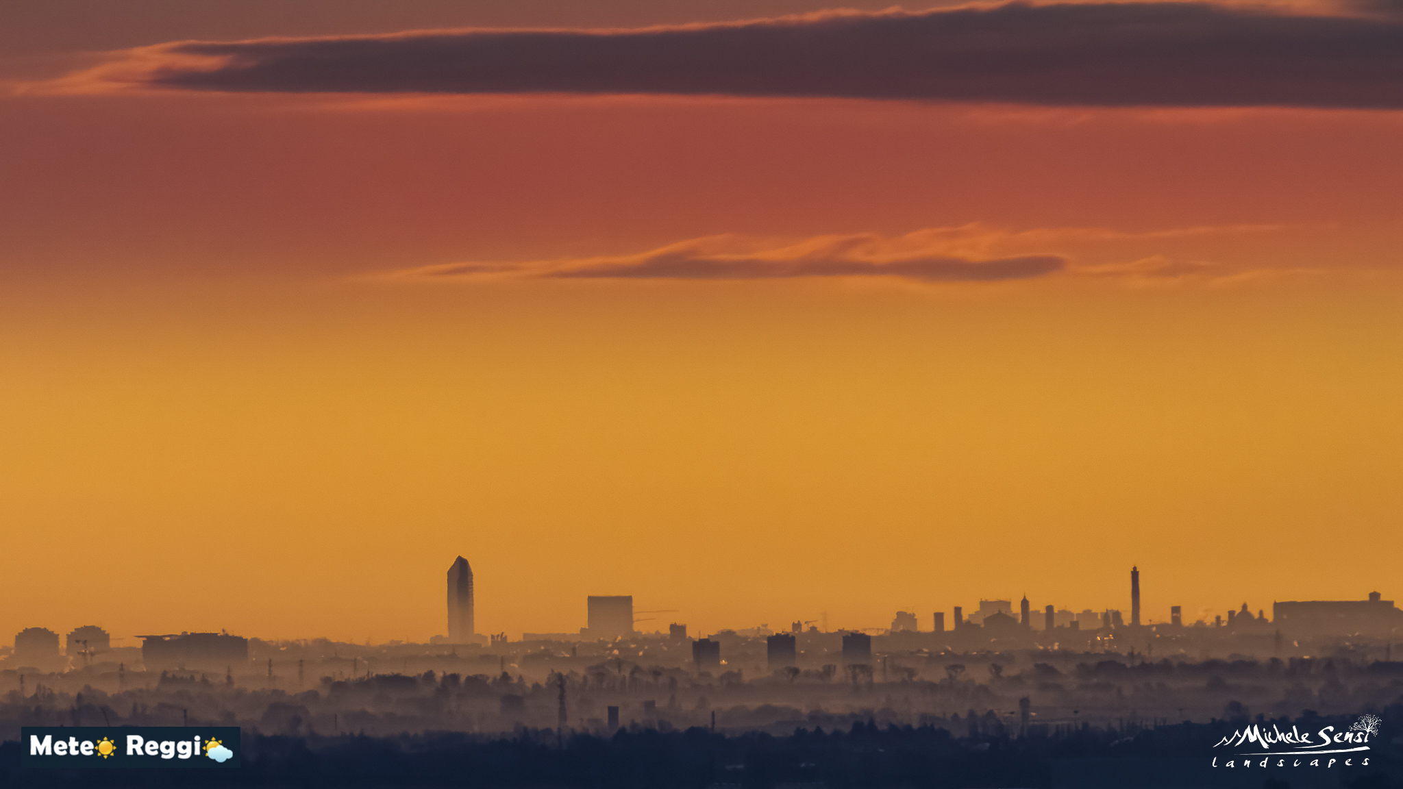 Si nota un effetto "sfumato" sulla città, con una foschia che rende i contorni meno netti. Questo è dovuto all’inversione termica, un fenomeno comune nelle prime ore del giorno in Pianura Padana. L’aria fredda rimane intrappolata vicino al suolo sotto uno strato di aria più calda, favorendo la stagnazione di umidità e inquinanti. L'evaporazione delle piogge di sabato hanno giocato un ruolo fondamentale in tutto questo.