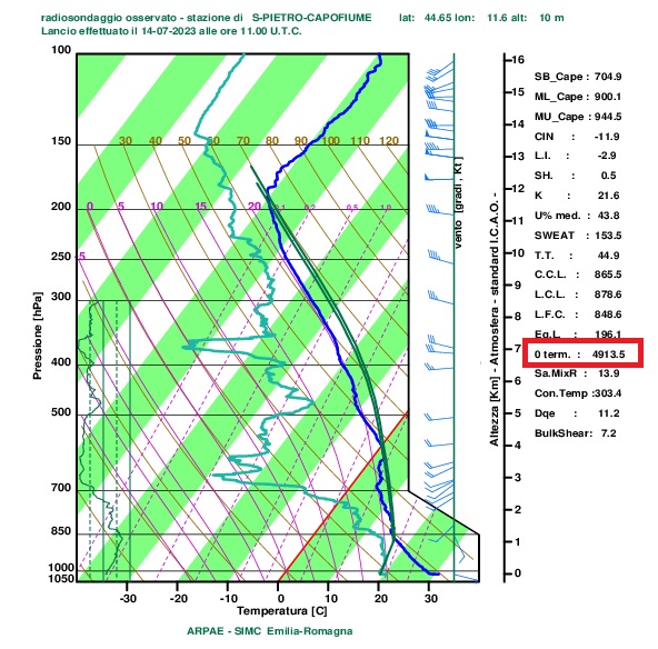 ARPAE presso la Base meteorologica operativa "Giorgio Fea" a San Pietro Capofiume (BO), alle ore 00:00 UTC e alle 12:00 UTC (ora di Greenwich) lancia un palloncino gonfiato di elio con attaccata una radiosonda che ogni 2 secondi trasmette dati a terra. Il palloncino sale ad una velocità di circa 5 metri al secondo e raccoglie i dati di temperatura, umidità relativa (da cui, assieme alla temperatura dell’aria, si ricava la temperatura di rugiada), forza e direzione del vento per una serie di livelli di pressione, dal suolo fino ad un’altezza media di circa 25 chilometri.
