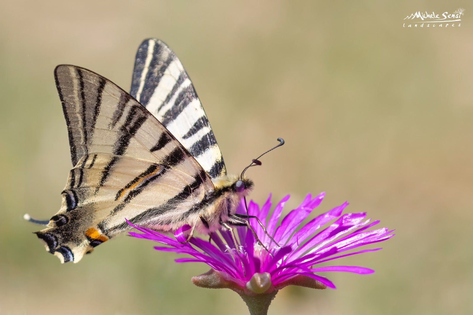 Gli adulti si nutrono del nettare di fiori selvatici come quello nell’immagine. Le larve, invece, si sviluppano su alberi come il biancospino, il ciliegio e l’albicocco.
