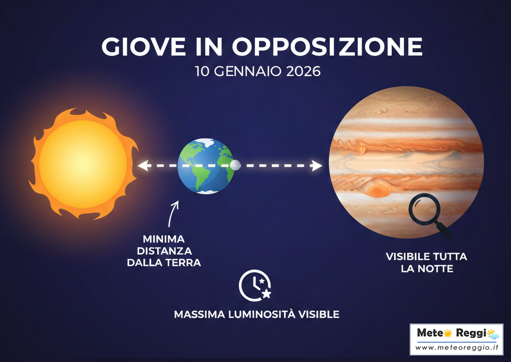 Se vi è capitato di guardare verso est appena dopo il tramonto in queste sere di gennaio 2026, non avrete potuto fare a meno di notare un astro di una luminosità straordinaria. Non brilla in modo intermittente come le stelle, ma emana una luce fissa, calda e potente. Si tratta di Giove, che oggi raggiunge il punto di massima visibilità dell'intero anno: l'opposizione.