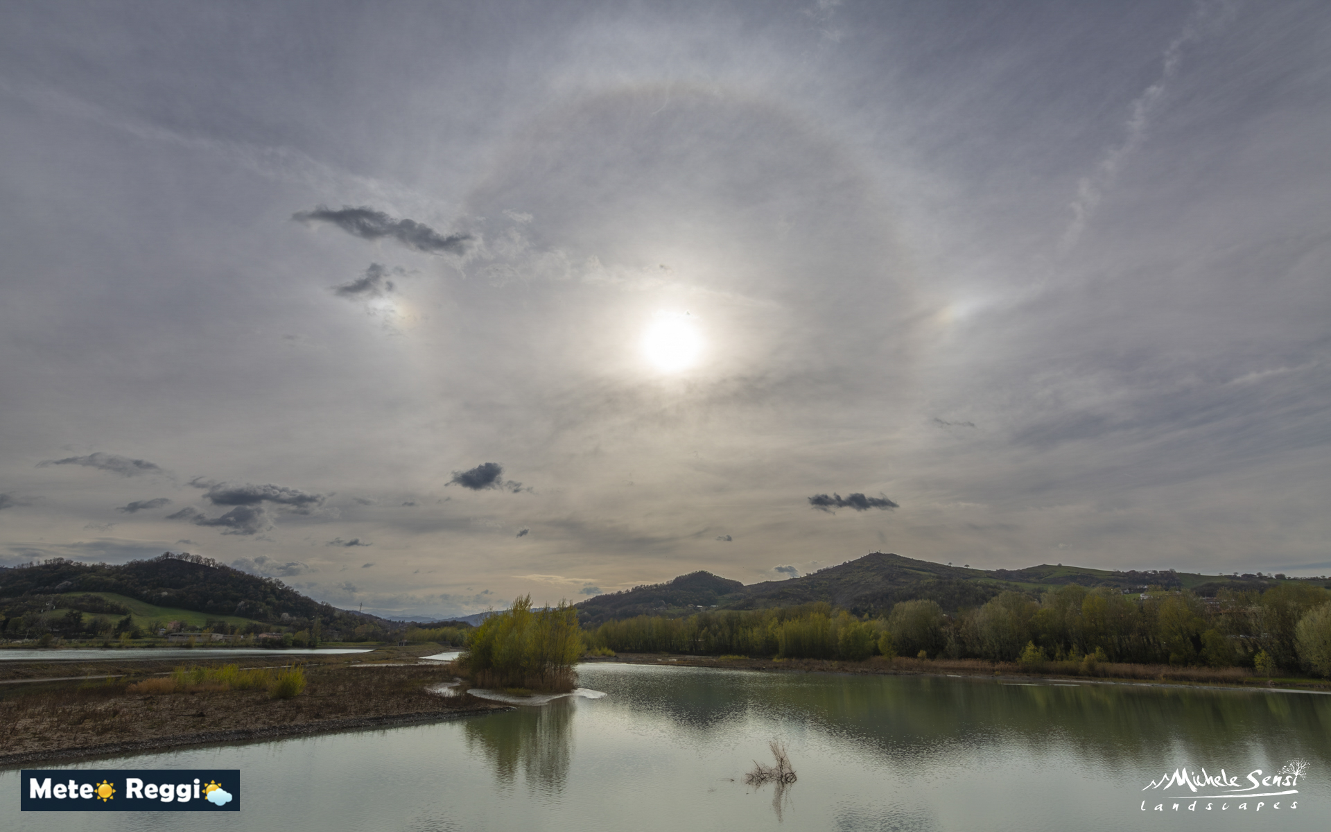 In questo secondo scatto, la scena si fa ancora più interessante dal punto di vista meteorologico e ottico. Non siamo in presenza di un semplice alone, ma di un vero e proprio complesso di fenomeni di rifrazione che aggiunge pezzi importanti al "puzzle" del cielo.