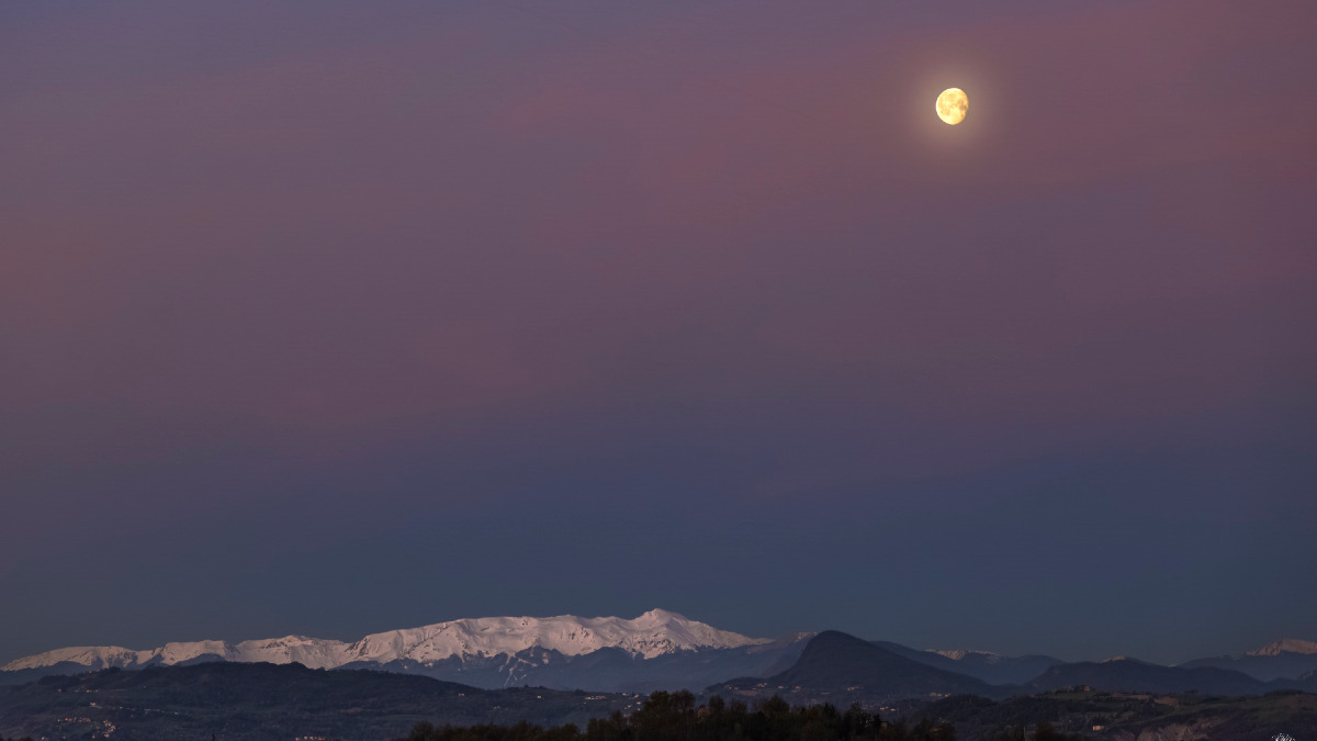 Guardando bene il profilo innevato, sembra quasi che il Gigante stia trattenendo il respiro per non far scappare la Luna.