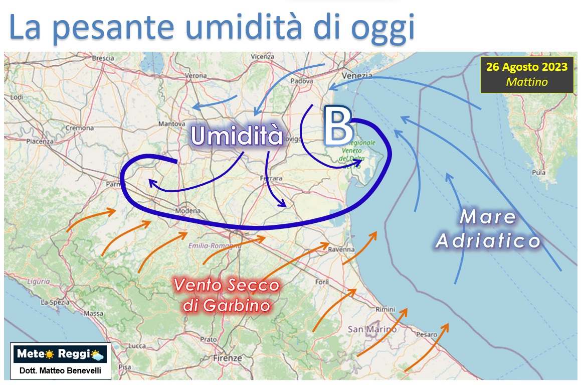Questo perché nei pressi del Delta del Po si è formato un piccolo vortice di bassa pressione che ha richiamato aria umida dall'Adriatico e l'ha scagliata verso il Po e la via Emilia.