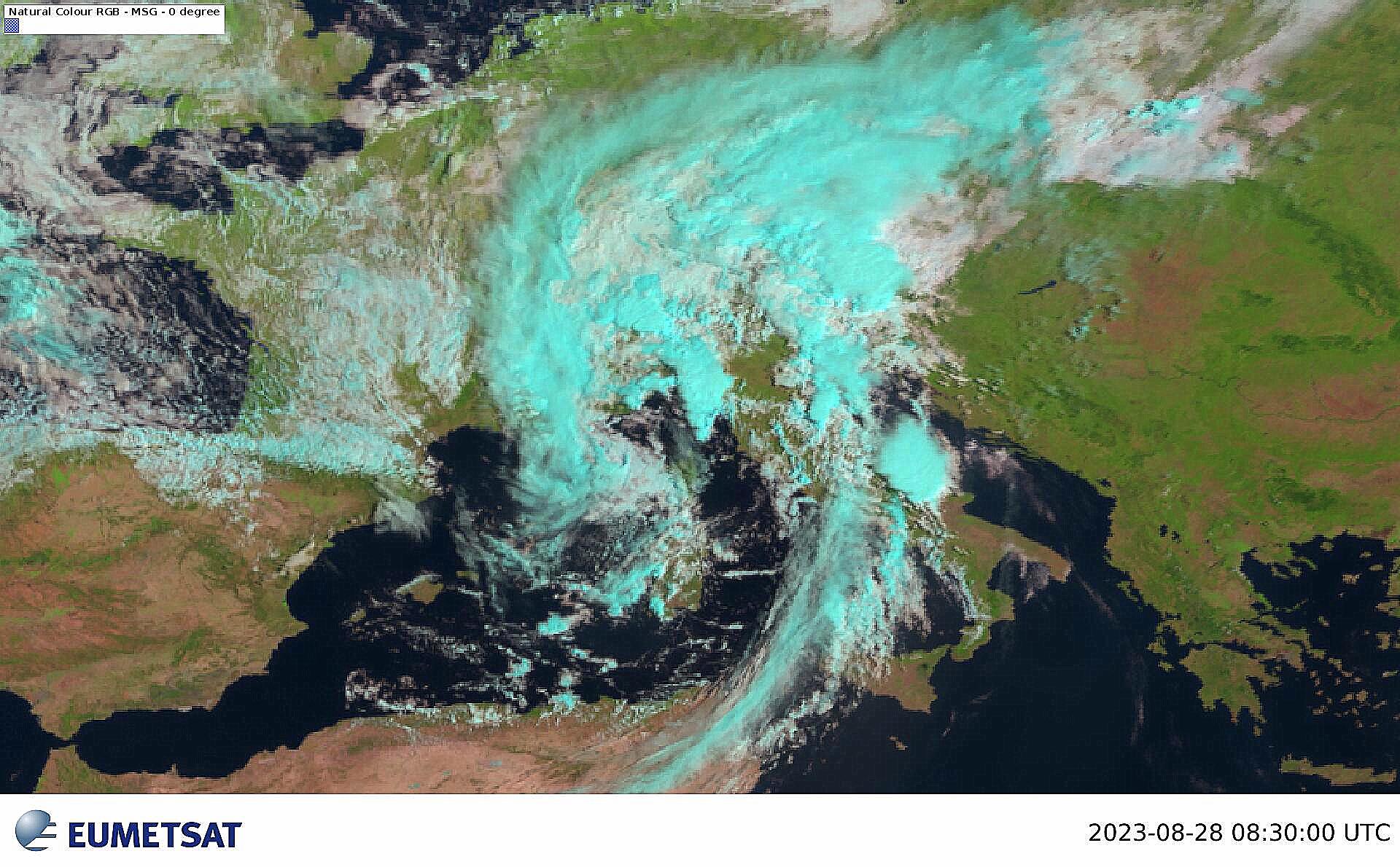 Polemiche a parte, lo scatto satellitare di queste ore è decisamente pittoresco e affascinante. Ma al tempo stesso non lascia adito a dubbi, la pioggia tornerà e sarà abbondante. La spirale di nuvole che si sta formando poco oltre il nostro Crinale ha una forma tentacolare e tra un braccio e l'altro abbiamo un vuoto che lascia spazio ad un bel Sole che finalmente splende senza cuocere.