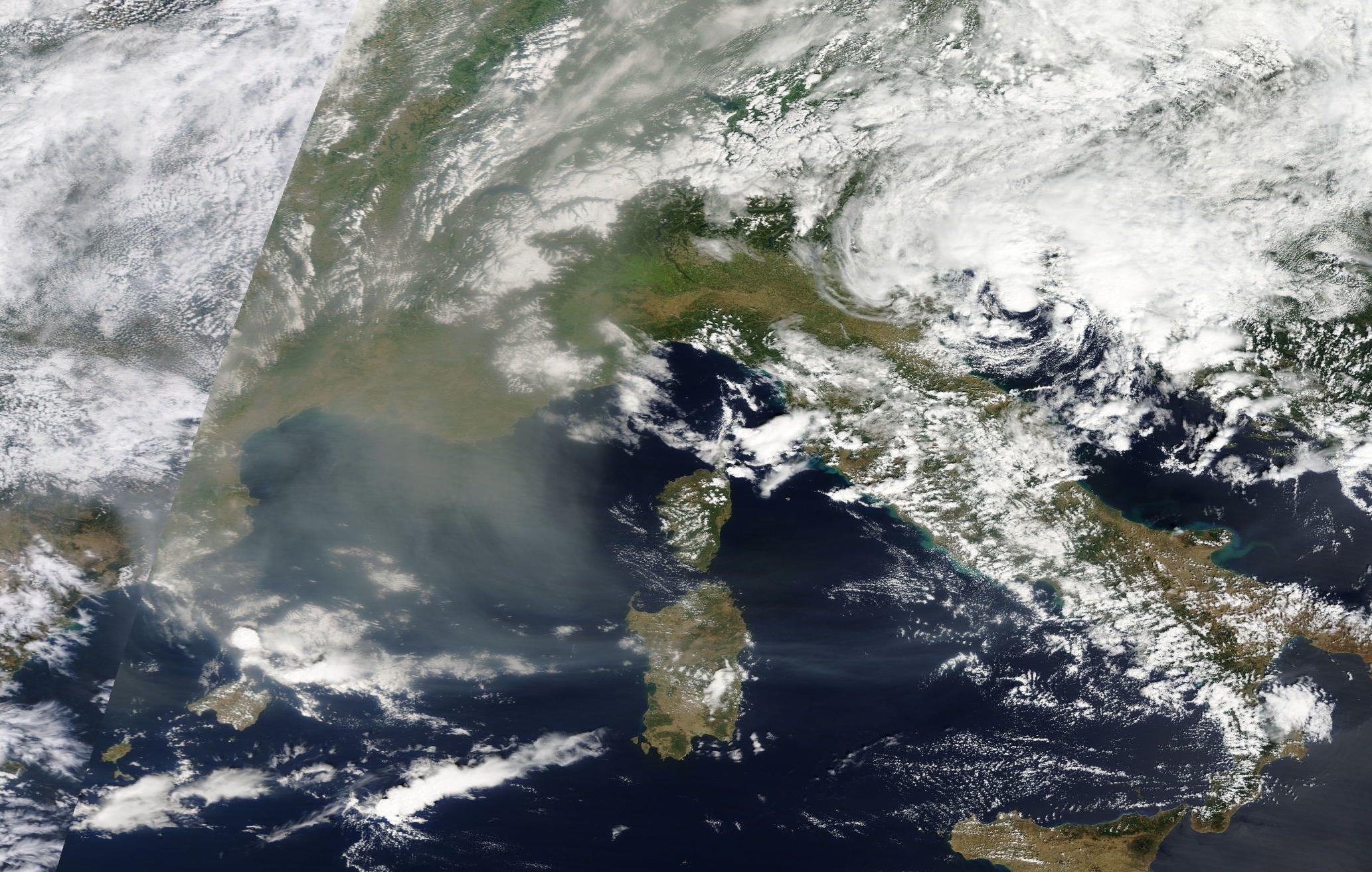 Si tratta di una nuvola di fumo piuttosto densa che arrivata nel cuore dell'Europa è ora richiamata dal ciclone "Rea" che ruota in senso antiorario nell'Adriatico settentrionale. Il richiamo d'aria ha fatto sì che ora la nube sia entrata nel Mediterraneo e probabilmente colorerà di tinte calde il tramonto di questa sera.