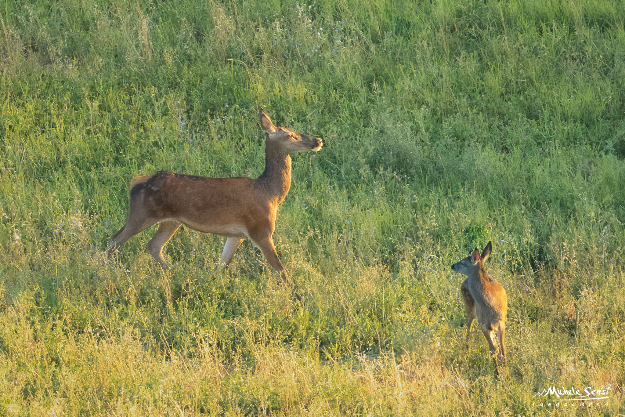 I Cervi sono molto più grandi, si trovano sul nostro alto Appennino (alle volte si spingono anche in Collina), ed hanno un palco molto ramificato.