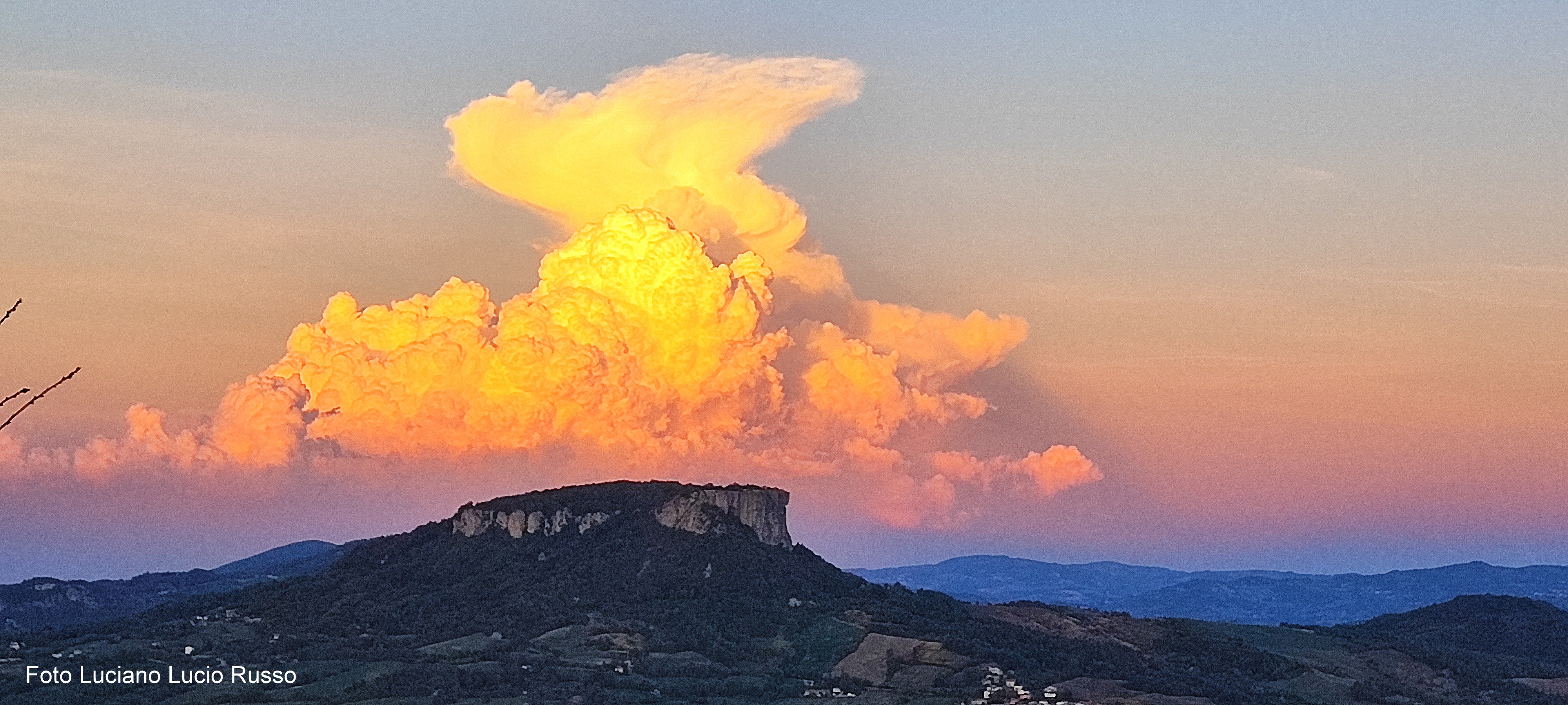 Ringraziamo il nostro utente: Luciano Lucio Russo di Talada Meteo (www.taladameteo.altervista.org) per le belle immagini che ritraggono la nube in quesitone in fase di sviluppo alle spalle della Pietra di Bismantova. La nube si trovava 60 Km oltre la Pietra.