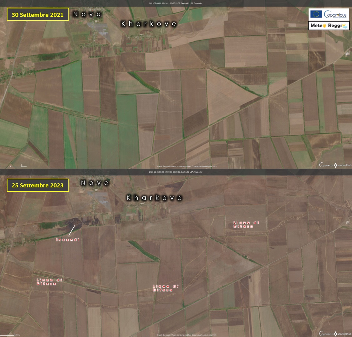 E così abbiamo sfruttato il sistema dell'ESA Copernicus per vedere cosa accade nei teatri più "caldi" e abbiamo provato a fare qualche triste raffronto sulle condizioni del territorio attuali e quelli prima della guerra.