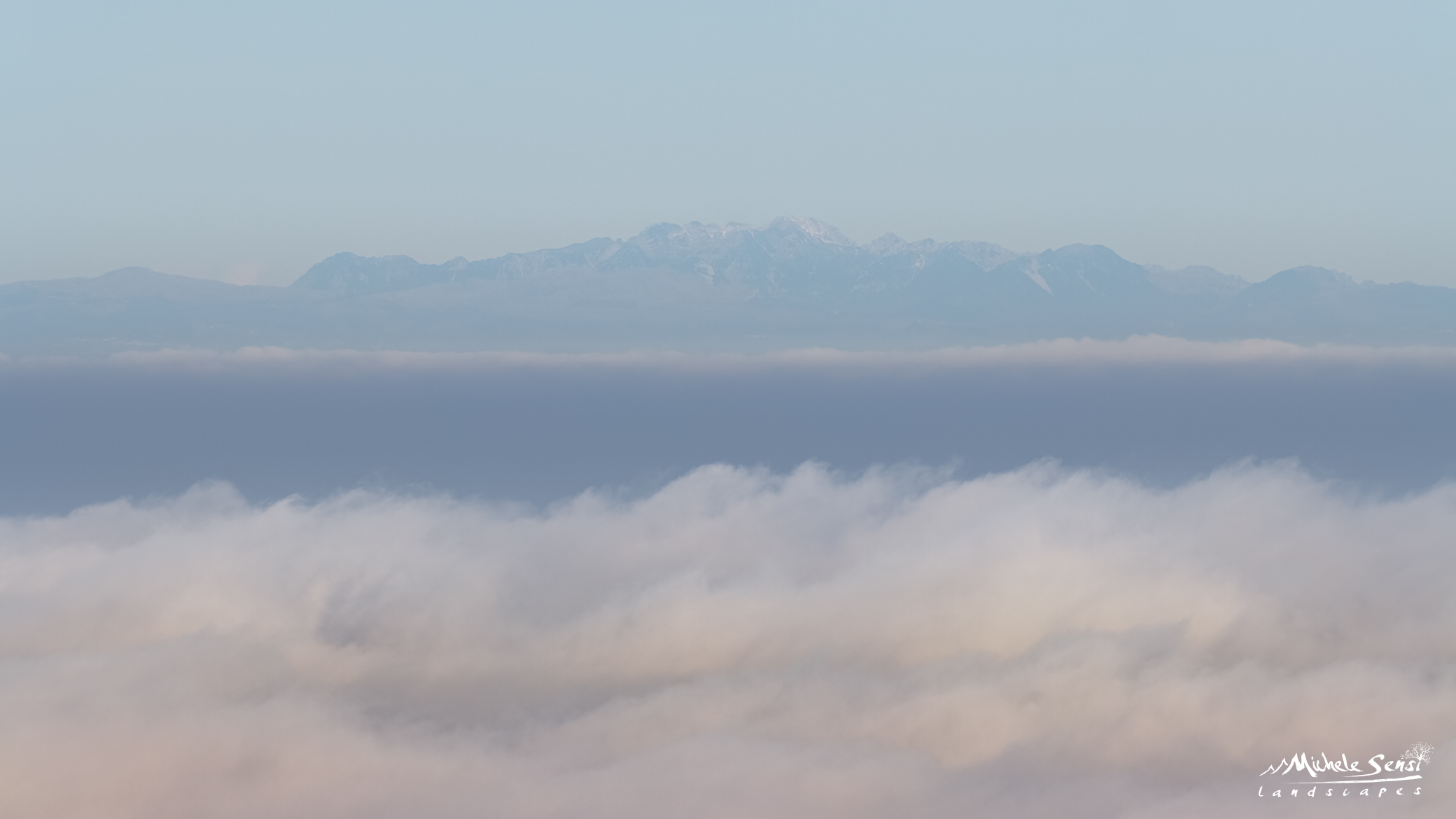 Capita, quindi, che se si ha la fortuna di trovarsi oltre il limite di questa cappa si possa godere di uno spettacolo mozzafiato, immersi nel tepore dell'aria calda e pulita. Una nebbia che ha anche la capacità di zittire il rumore di fondo che sale dalla Pianura verso i colli e fa maggiormente apprezzare il panorama all'osservatore. Negli scatti potete ammirare l'Adamello, il monte Baldo ed in fine la Lessinia.