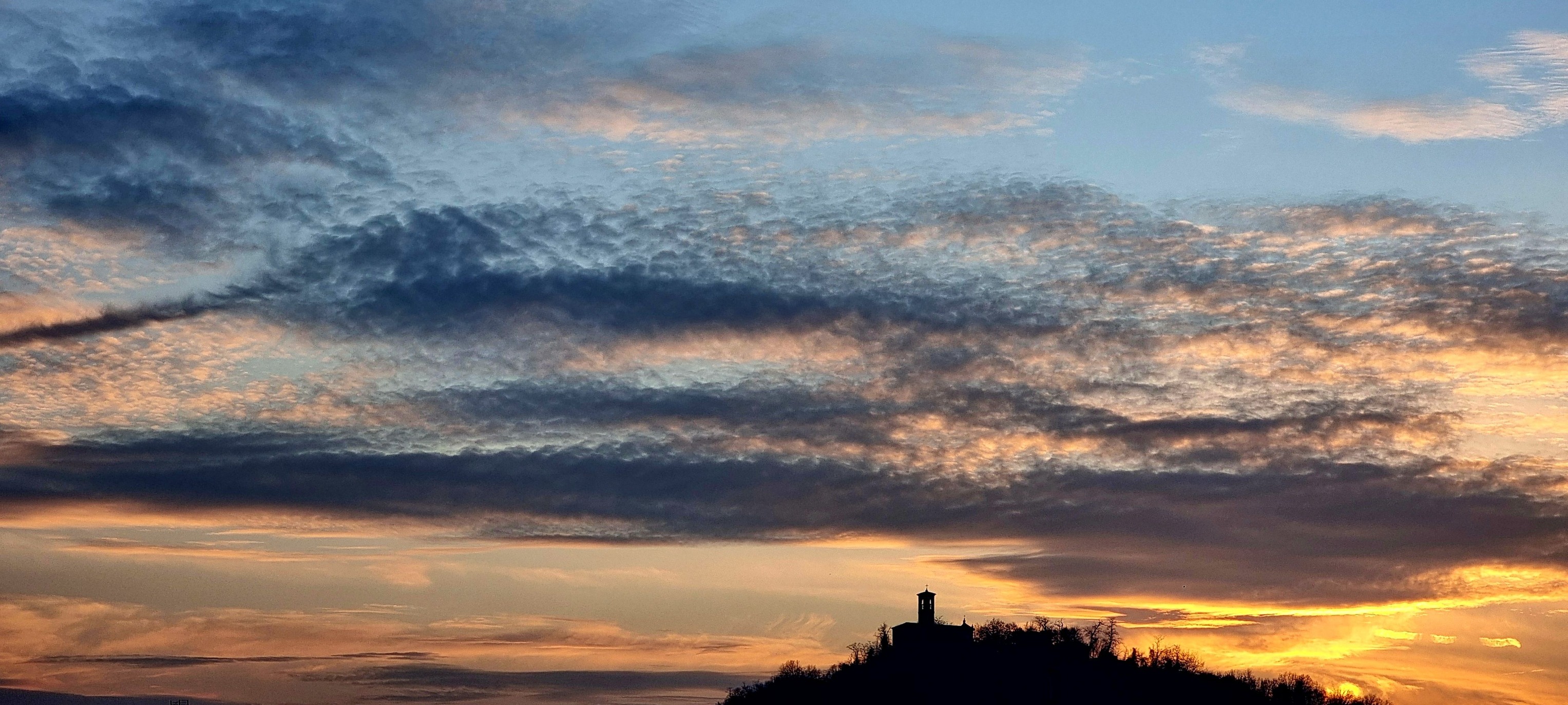 Torniamo tra i confini di casa per questo bel tramonto catturato da Francesco Neroni e che ci mostra una curiosa formazione nuvolosa alle spalle di Puianello.