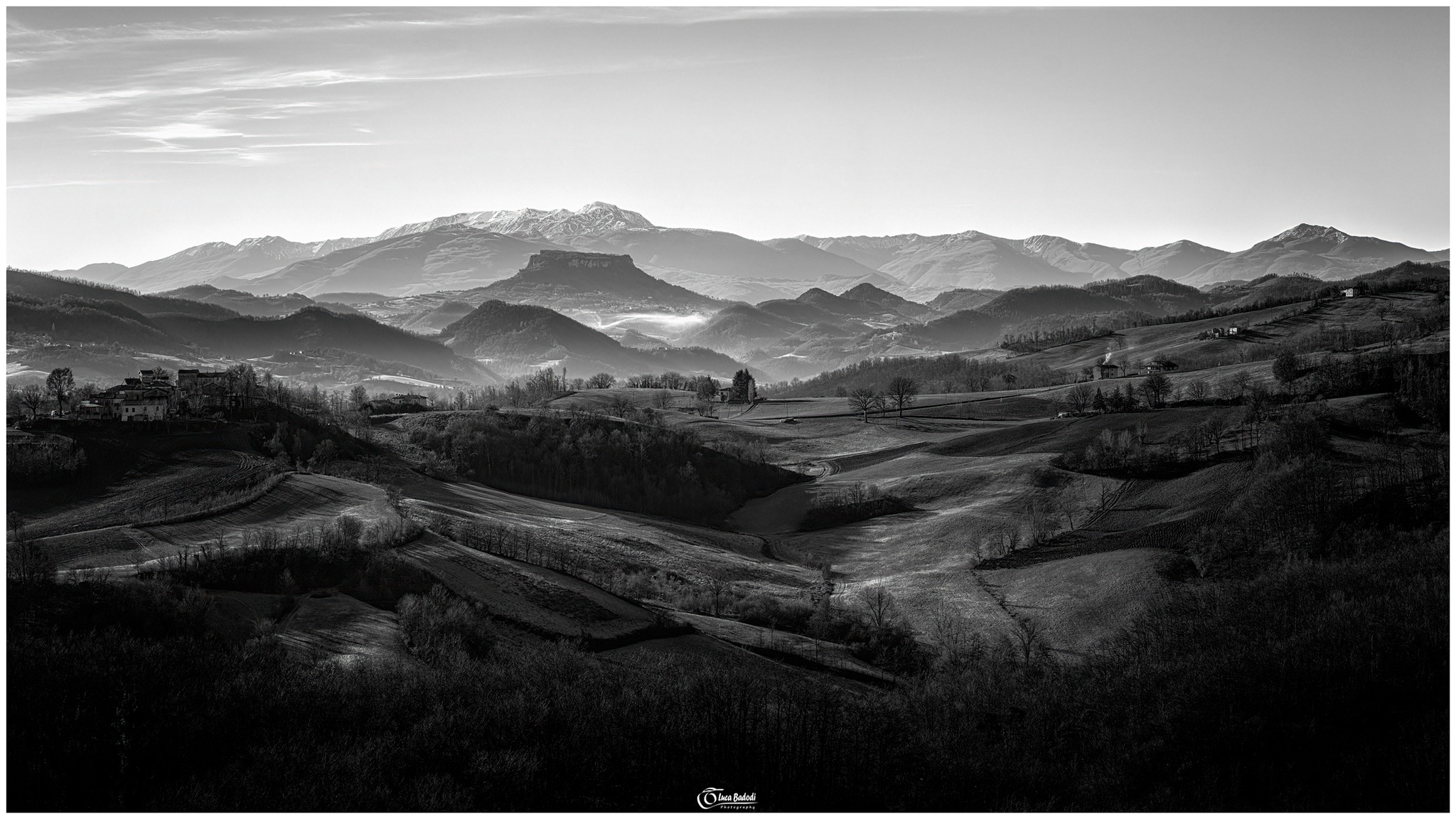 Questo concetto lo si assapora benissimo in questo magico scatto di Luca Badodi che cattura l'anima delle nostre montagne da quel balcone naturale che è la zona di Trinità, dietro le prime colline dei territori matildici. Un punto privilegiato per allineare la prominente Pietra di Bismantova con il Gigante.