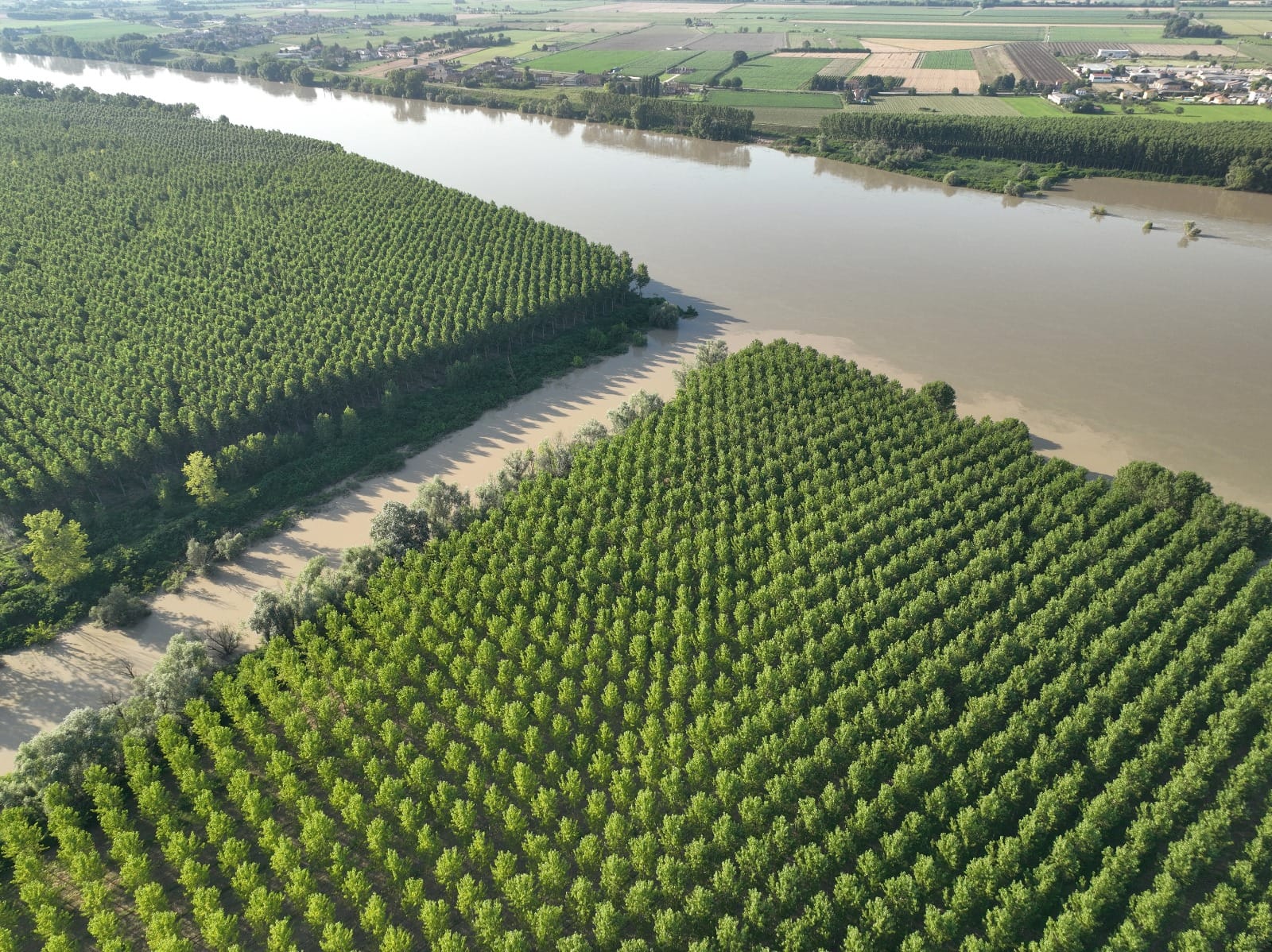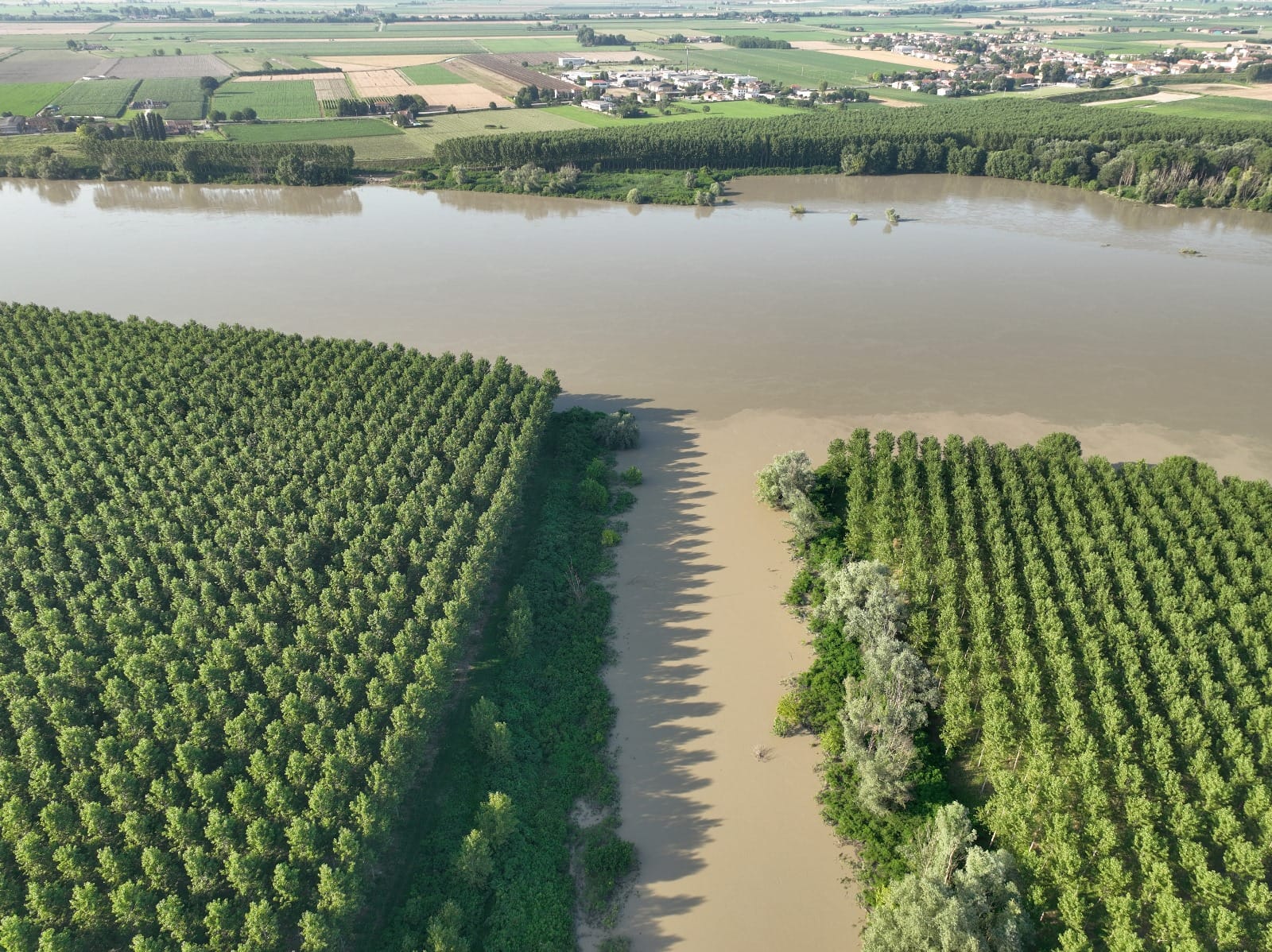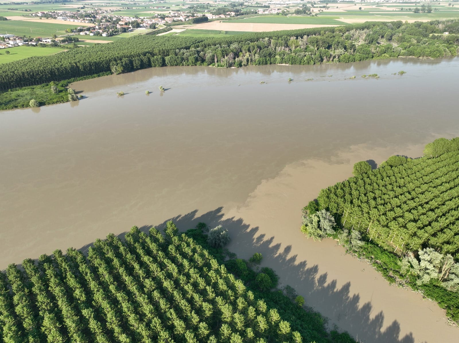 Da questi scatti vediamo chiaramente una vistosa differenza cromatica tra le acque del Grande Fiume e quelle del Secchia. Ma come mai?