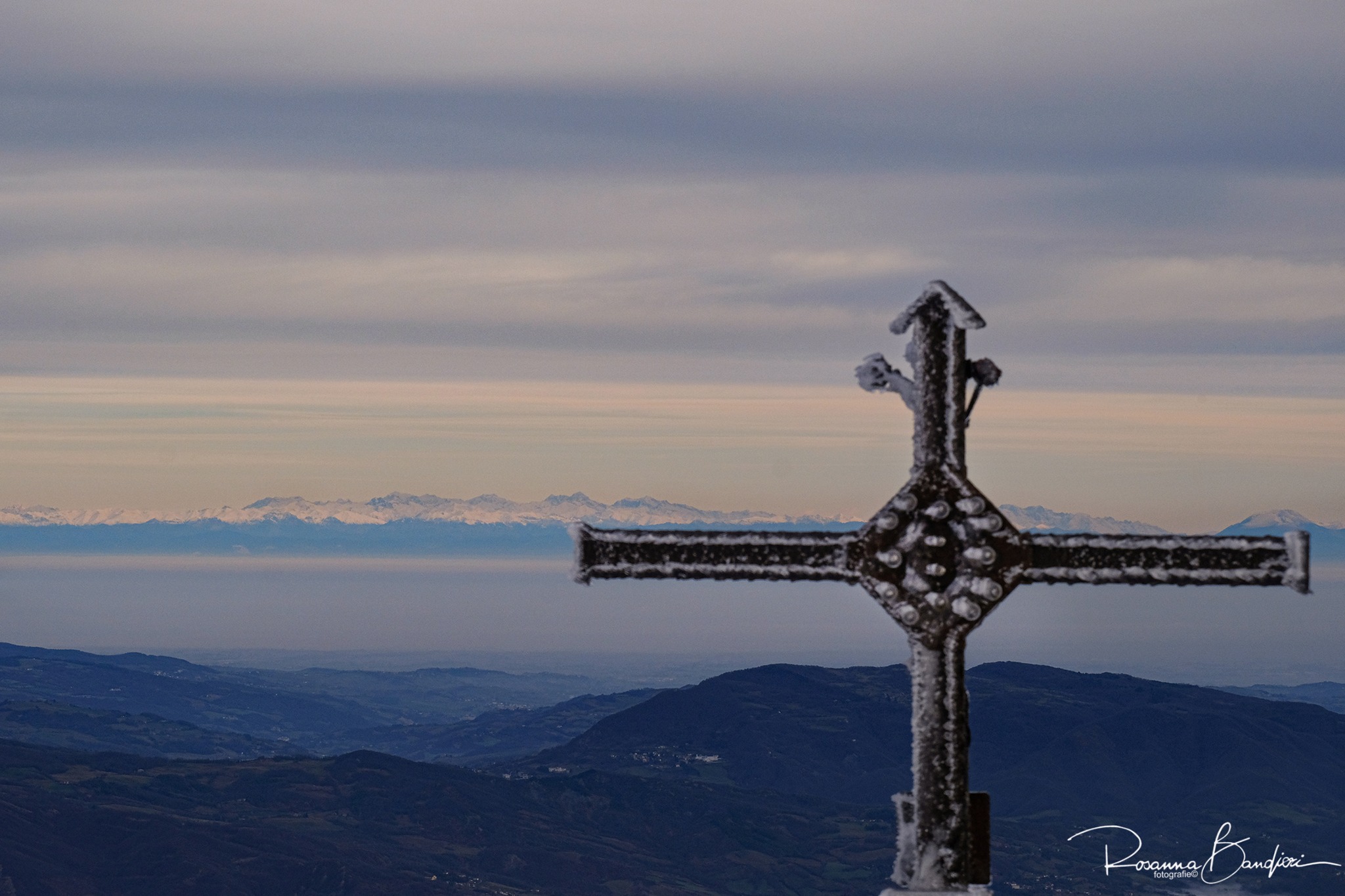 Un chiaro esempio di buon seeing lo vediamo in questo scatto catturato da Rosanna Bandieri dalla croce del suo amato monte Casarola. Alle spalle della croce la vista spazia fino alle Alpi coperte di bianco. All'estrema destra di nota l'inconfondibile sagoma maestosa del monte Baldo e sulla sinistra della croce il gruppo dell'Adamello.