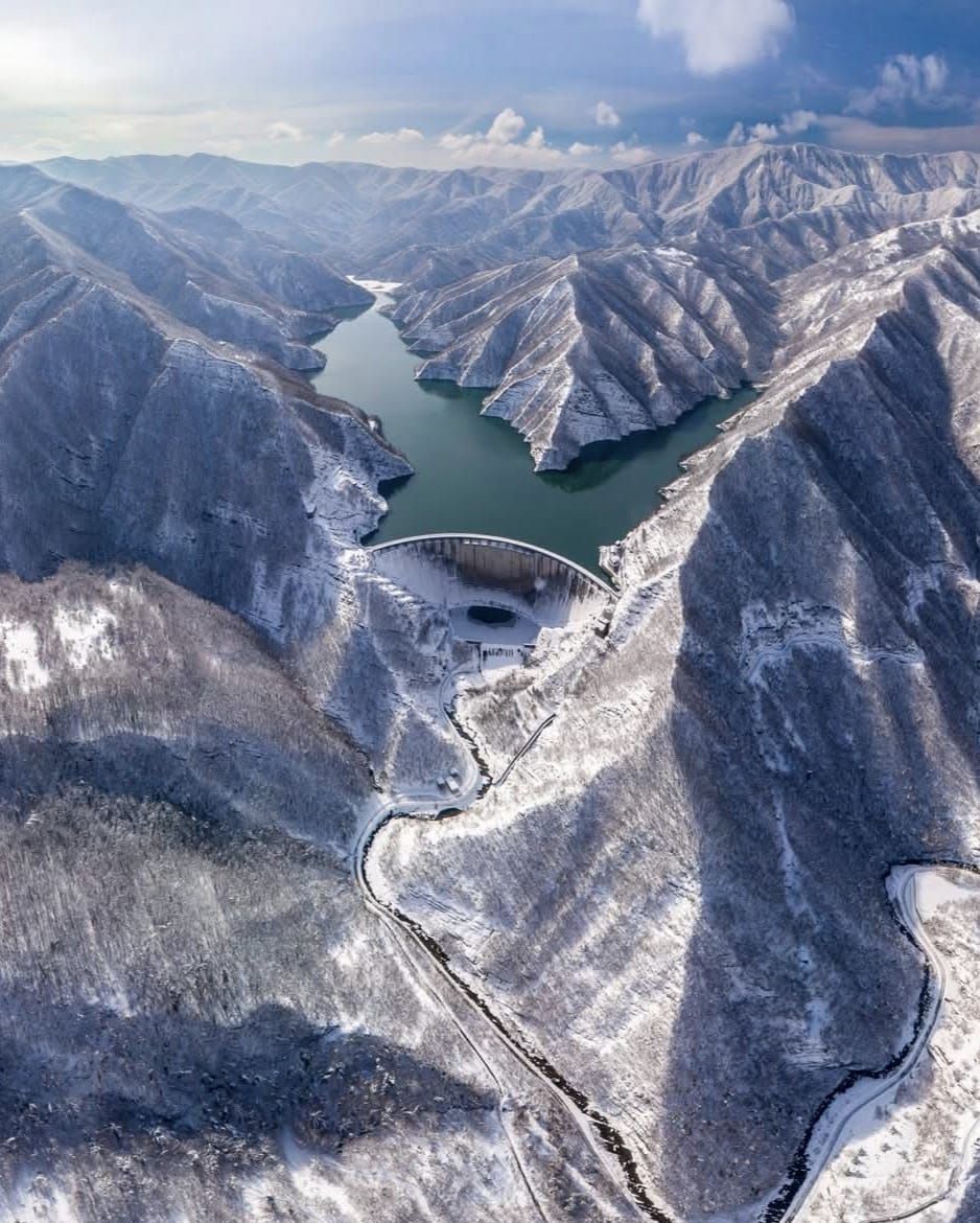 Bellissimo scatto aereo di Sergio Vaiani che ci mostra l'inconfondibile sagoma dell'invaso artificiale di Ridracoli.