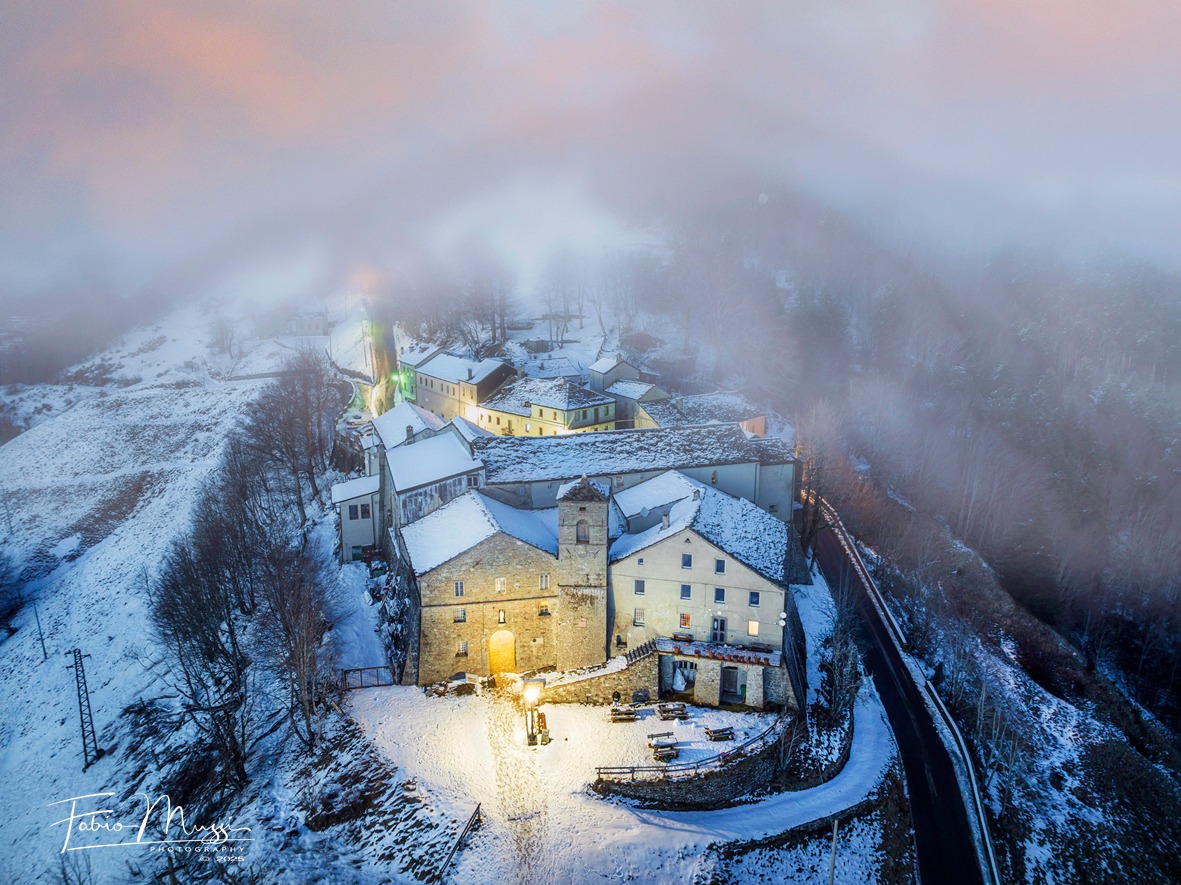 Torniamo sulle creste dell'Appennino tra Emilia e Toscana con questo suggestivo scatto aereo di Fabio Muzzi che ci porta a San Pellegrino in Alpe.