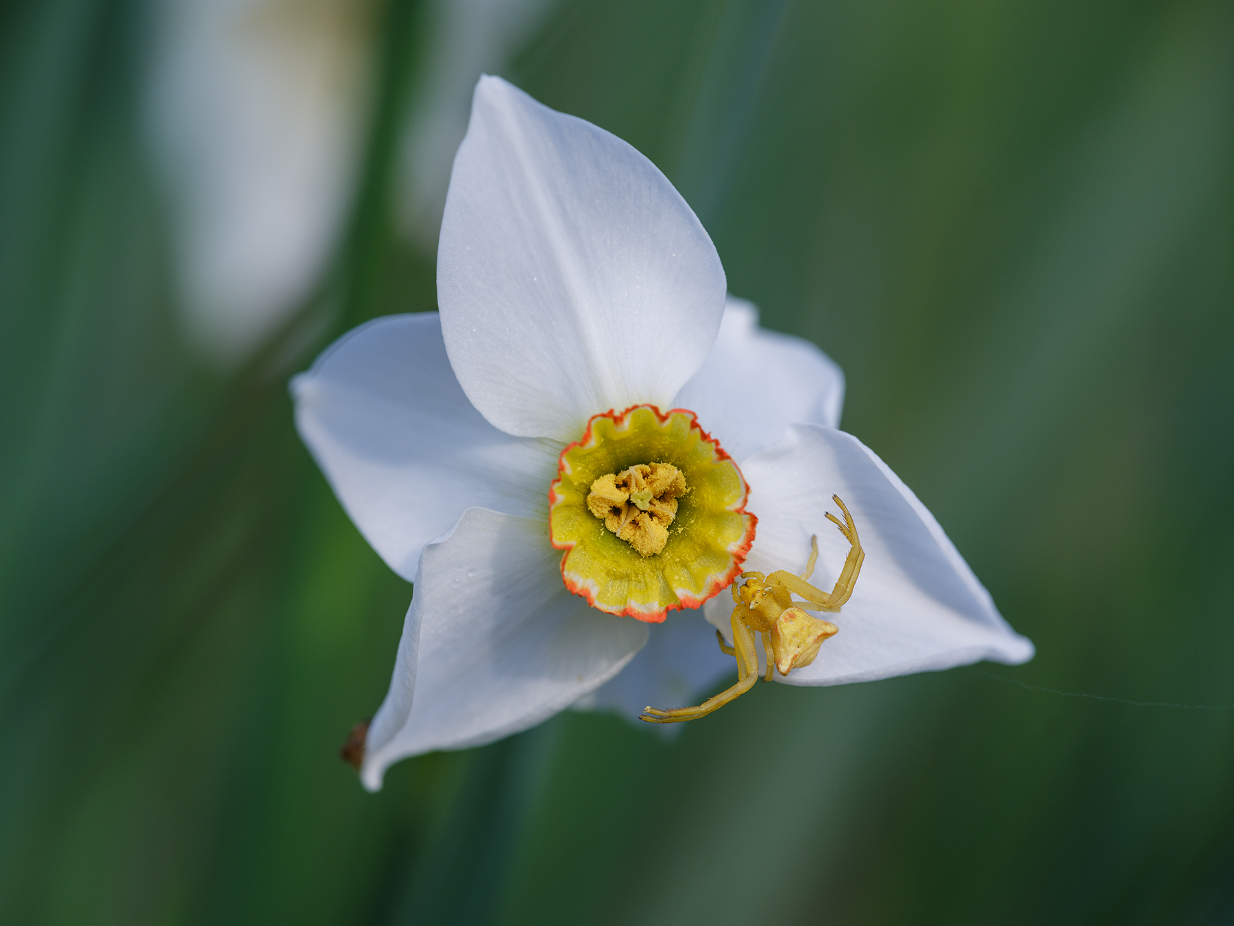 Uno degli amanti di questo genere di caccia è il ragno Granchio (Thomisus onustus).