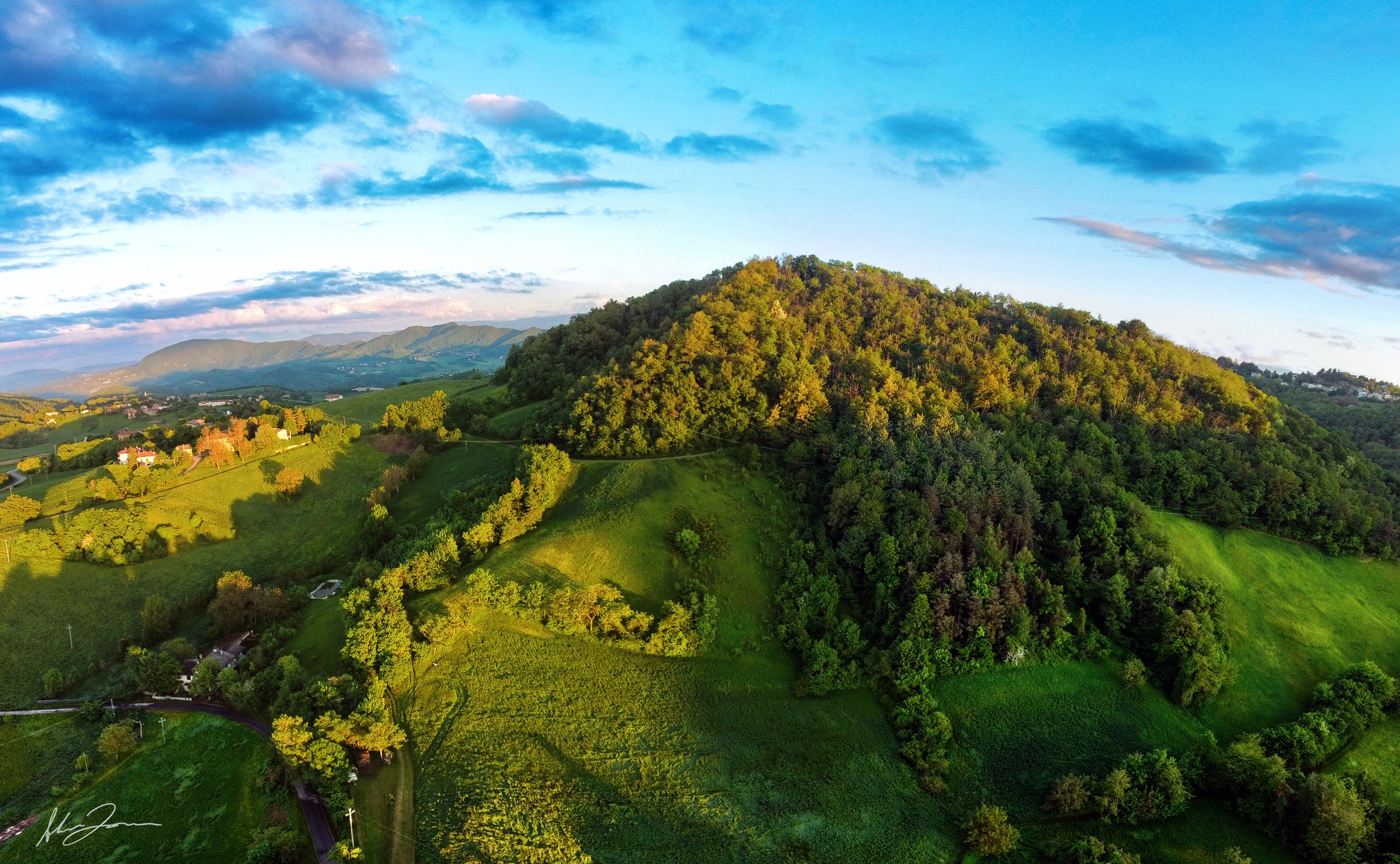 La foto del giorno di oggi è una cattura dall'alto di Alberto Vezzani che ci mostra in primo piano un meraviglioso e lussureggiante monte Portola, nel comune di Carpineti, nel cuore dell’Appennino reggiano, immerso in un paesaggio collinare che in primavera si accende di verdi intensi e contrasti di luce molto suggestivi.