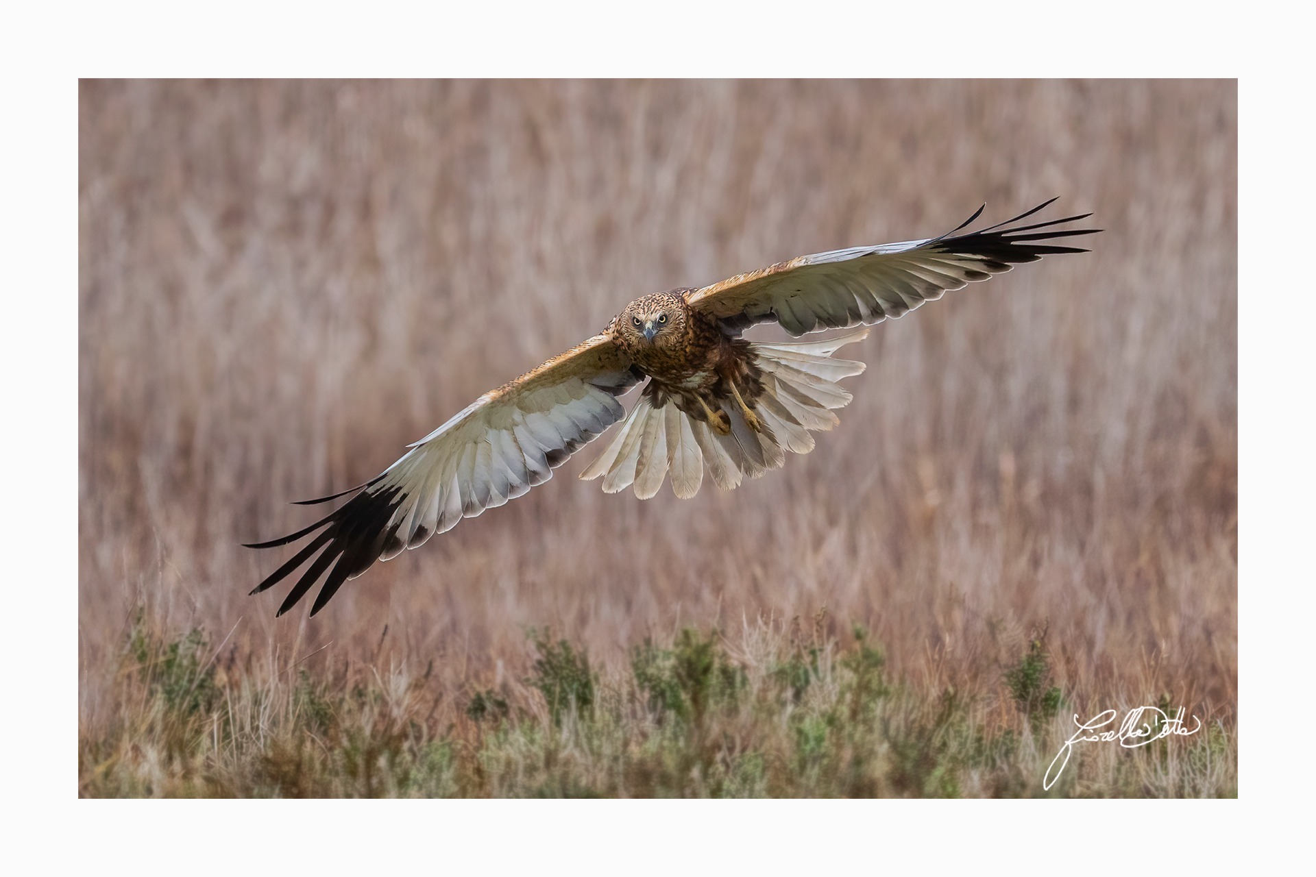 Torniamo a fare un po' di birdwatching con questo favoloso scatto di Fiorella Dotta che immortala uno splendido esemplare di Falco di Palude (Circus aeruginosus).