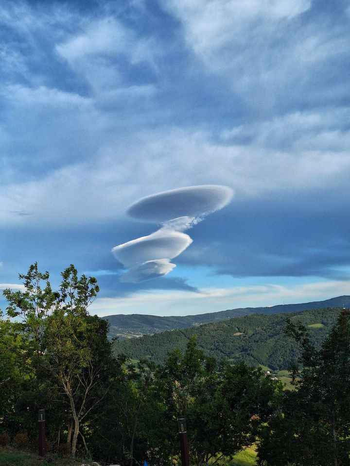 Sì, le nuvole lenticolari possono formarsi una sopra l'altra. Questo fenomeno è noto come "nuvole lenticolari stratificate" o "nuvole lenticolari multiple." La formazione di queste nubi avviene in condizioni specifiche di flusso d'aria sopra rilievi montuosi o altre barriere geografiche che favoriscono la creazione di onde atmosferiche stazionarie.