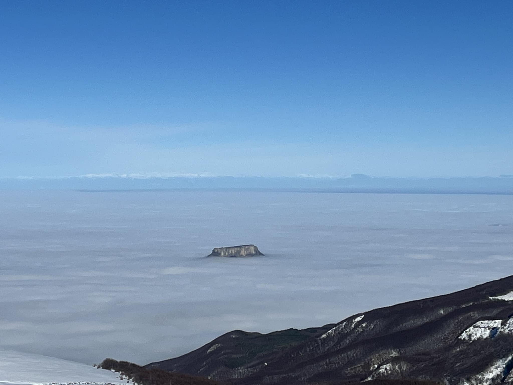 Come un iceberg alla deriva ... la Pietra di Bismantova che emerge dalle nebbie è un blocco di arenaria lungo 1 km, largo 240 metri e alto 300 metri rispetto ai campi circostanti. La sua sommità, che raggiunge i 1041 metri, spesso riesce a bucare il tappeto di nuvole e mostrarsi al Sole.