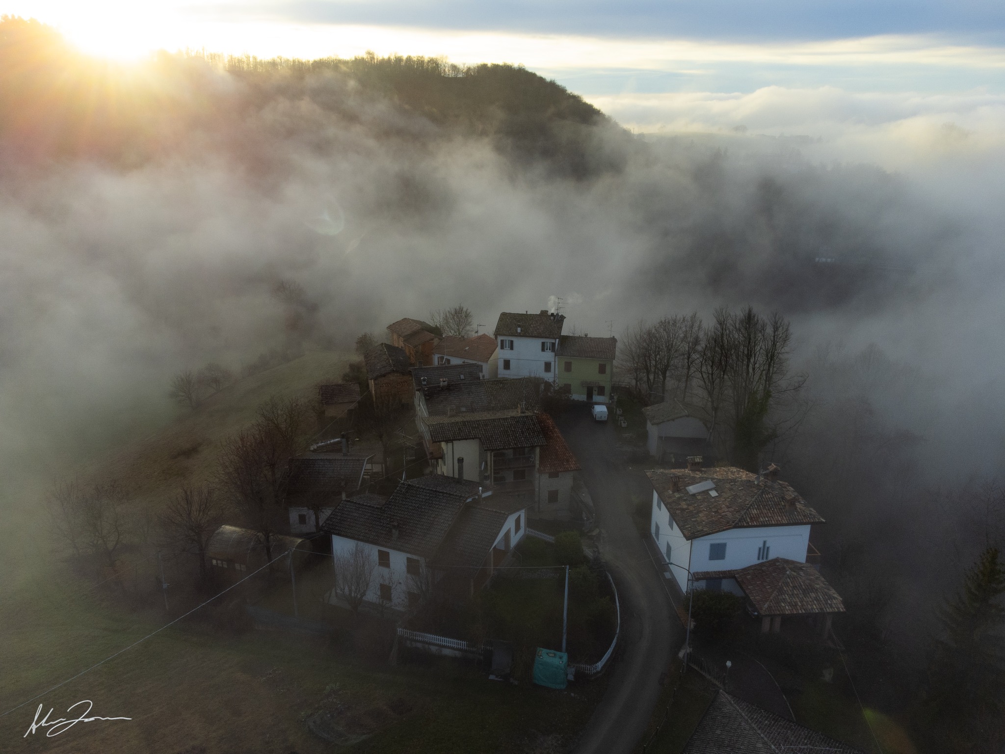 Con questo magisco trittico aereo di Alberto Vezzani ci portiamo nel cuore della collina reggiana, tra i comuni di Carpineti e Casina, la terra si piega in un nodo idrografico di rara complessità. Non è solo un paesaggio di calanchi, castagneti, boschi e praterie, ma un vero e proprio spartiacque vivente, dove il destino di ogni goccia di pioggia si decide in pochi metri di distanza.