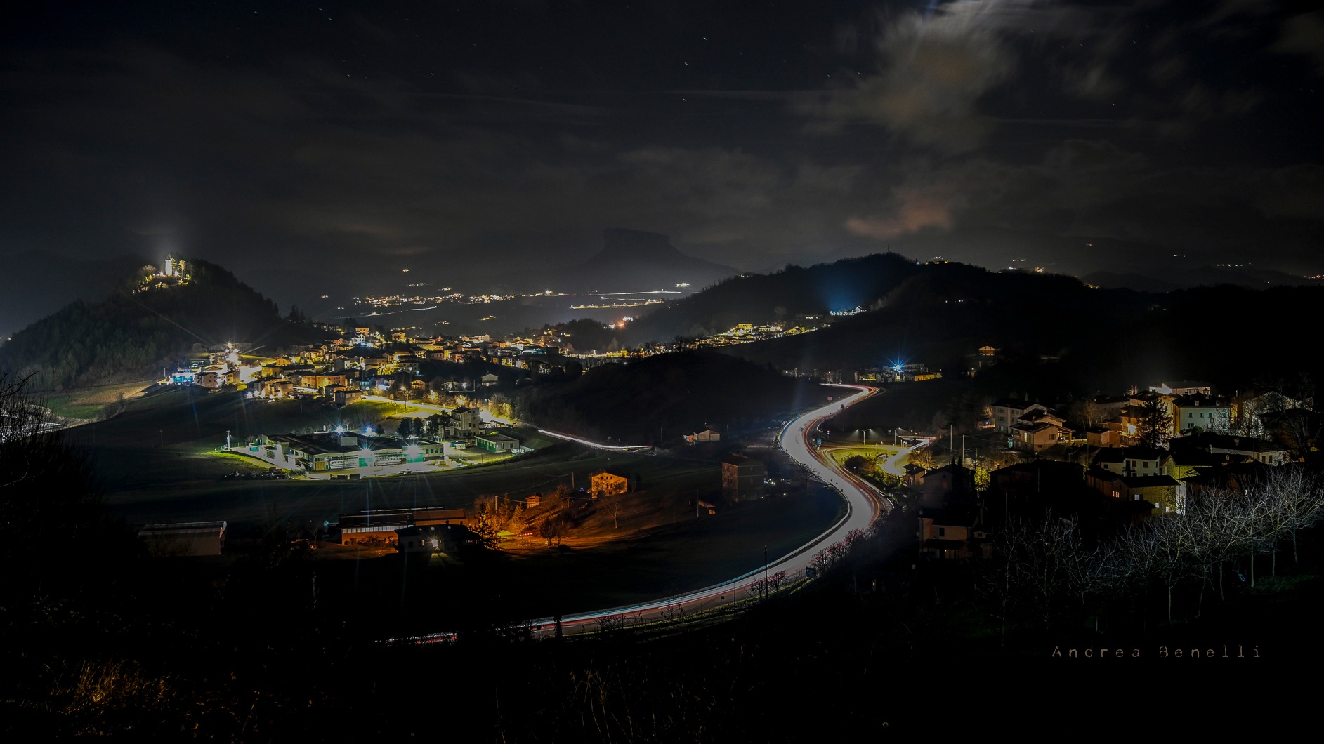 Le luci dei centri abitati pitturano il paesaggio come un presepe, ma è anche un buono spunto per discutere di inquinamento luminoso in una zona che parrebbe non esserne affetta... e invece ...