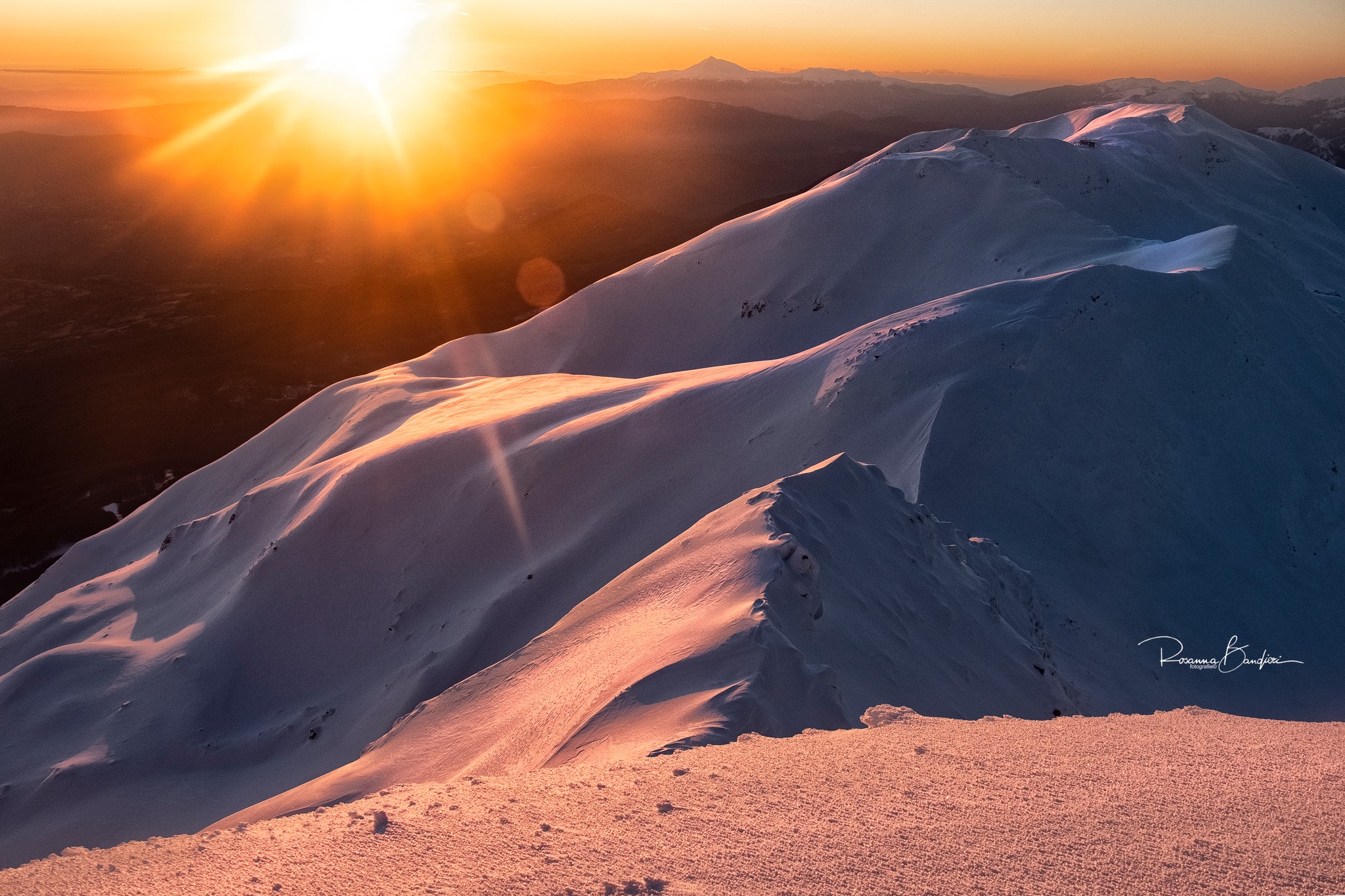 Che dall'alto del monte Cusna ci mostra un'alba mozzafiato con tanto di monte Cimone sullo sfondo.
