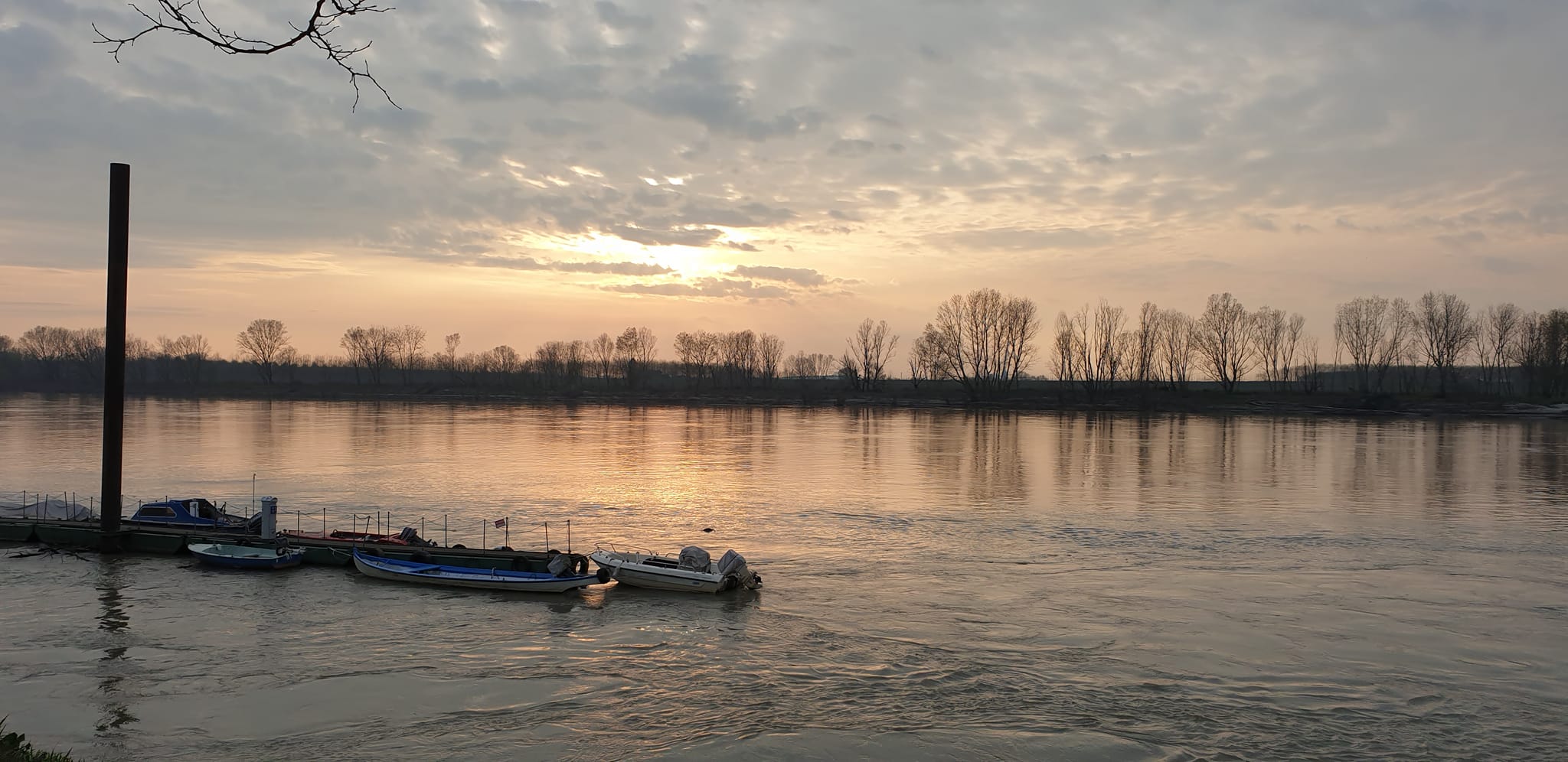 Lo specchio d'acqua che separa l'Emilia dalla Lombardia è bello ampio, come si vede da questo bellissimo tramonto catturato da Mela Bassoli a Guastalla.
