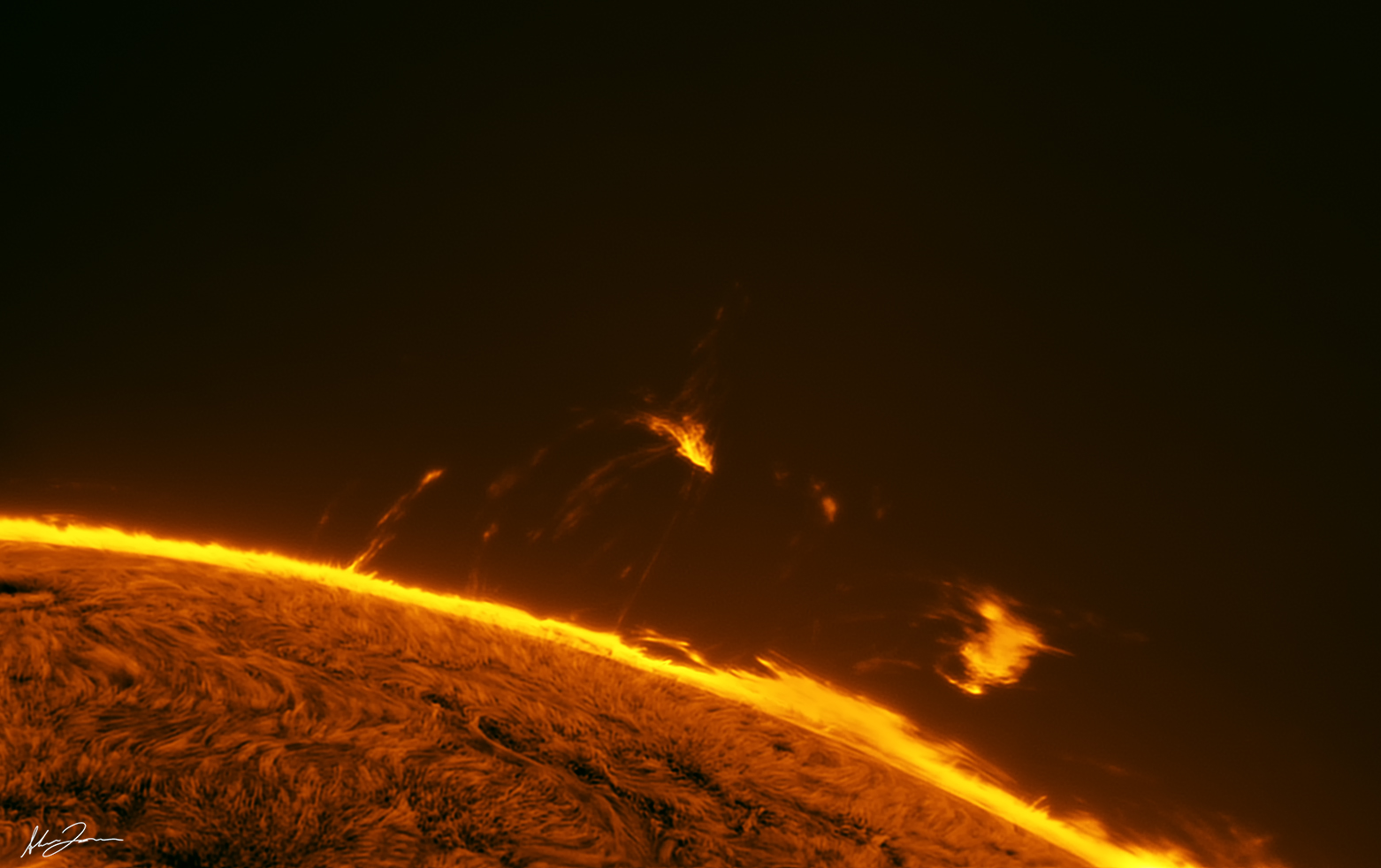 Per riscaldarci dopo gli ultimi giorni di freddo e pioggia abbiamo scelto un trittico di immagini solari catturate da Alberto Vezzani.
