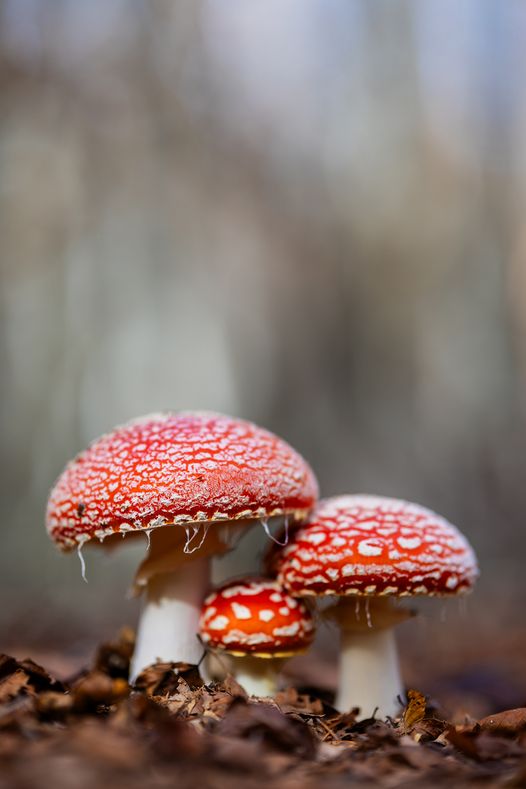 Tra i funghi più iconici abbiamo sicuramente il Porcino, ma sicuramente nell'immaginario comune è questo il fungo più famoso in assoluto. Stiamo parlando dell'Amanita muscaria, come questa "famigliola" immortalata in modo superbo da Andrea Frassinetti.