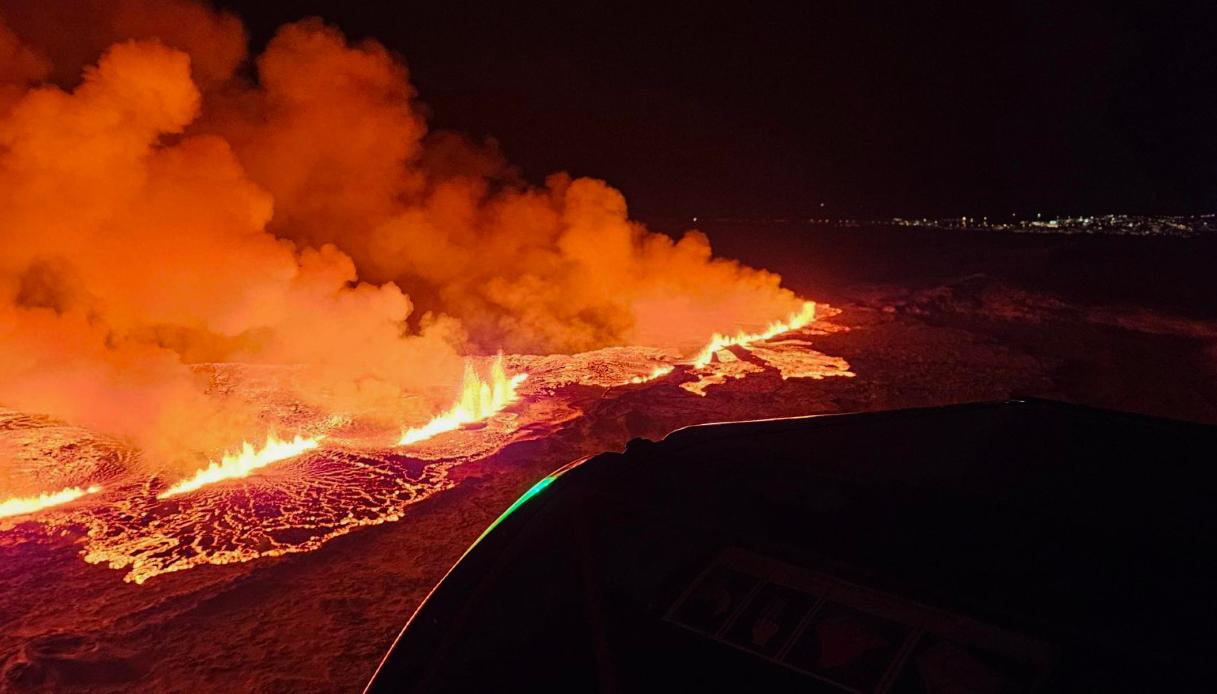 Fontane di lava che stanno minacciando da vicino l'abitato di Grindavík di cui vi avevamo parlato qualche settimana fa, quando venne evacuato a causa di forti terremoti e fratture nel terreno dai quali uscivano gas e calore. I primi segnali di una imminente eruzione che si è manifestata con tutta la sua forza in piena notte.