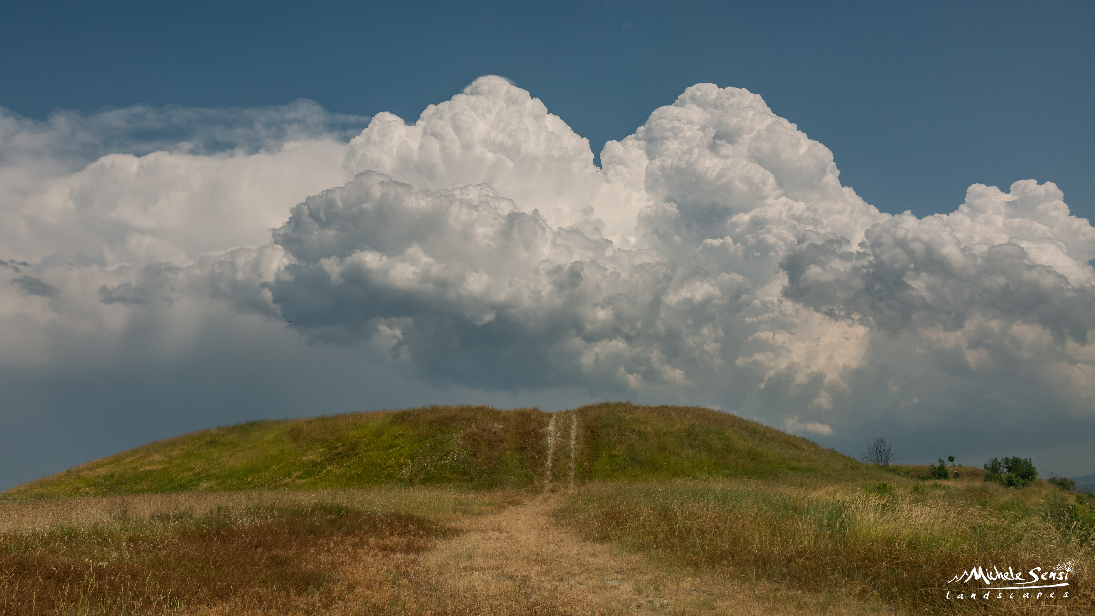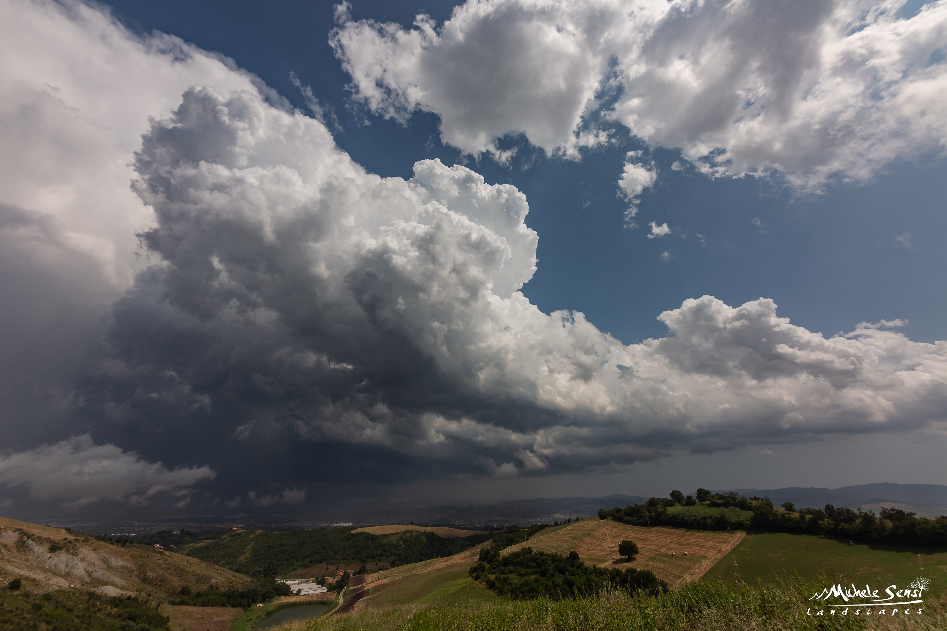 Per tutta la mattinata abbiamo avuto delle nuvole cumuliformi che provavano a salire verso l'alto, ma si è dovuti arrivare alla soglia di 31°C per innescare i moti verticali necessari e l'ingresso in Pianura di aria fresca dal parmense.