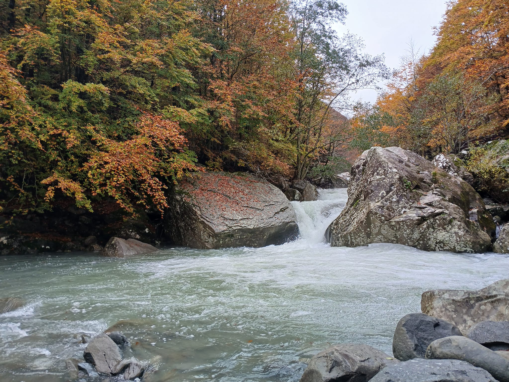 L’immagine cattura perfettamente questo senso di quiete e bellezza, con il torrente Dolo che scorre indomito tra le rocce e le colline che si stagliano imponenti e protettive. È un luogo dove il tempo sembra essersi fermato, dove il visitatore può respirare a pieni polmoni l'aria fresca e cristallina dell'Appennino e lasciarsi avvolgere dai caldi colori autunnali.
