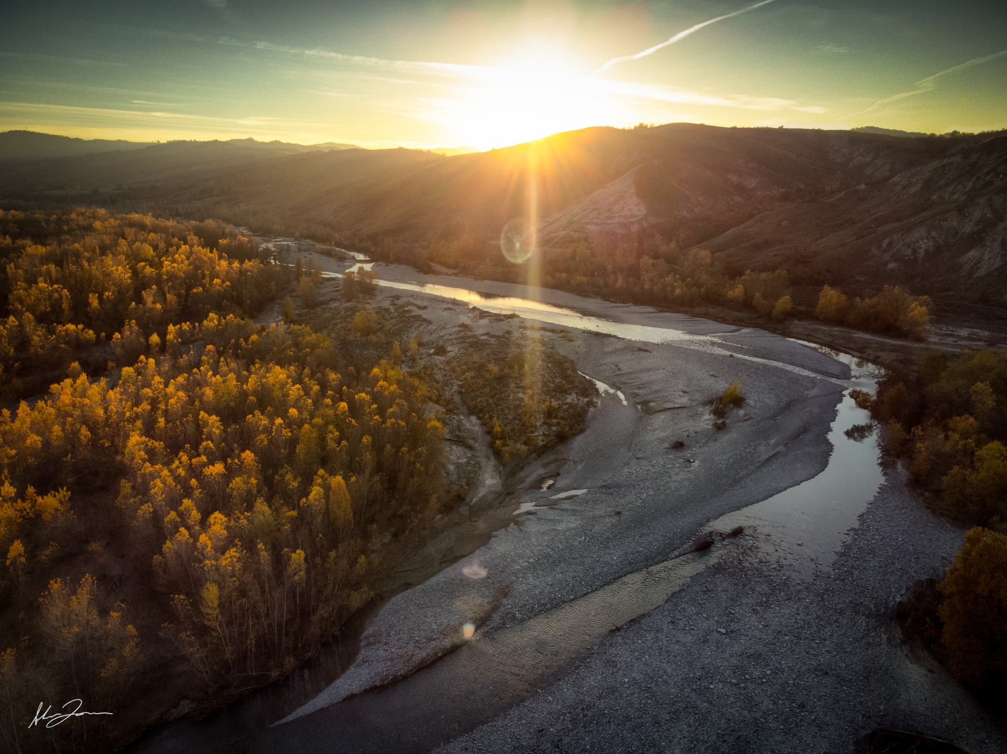I pioppi neri e cipressini iniziano ad ingiallire e a colorare i nostri corsi d'acqua, come nel caso dell'Enza che possiamo ammirare in questi fantastici scatti catturati da Alberto Vezzani.