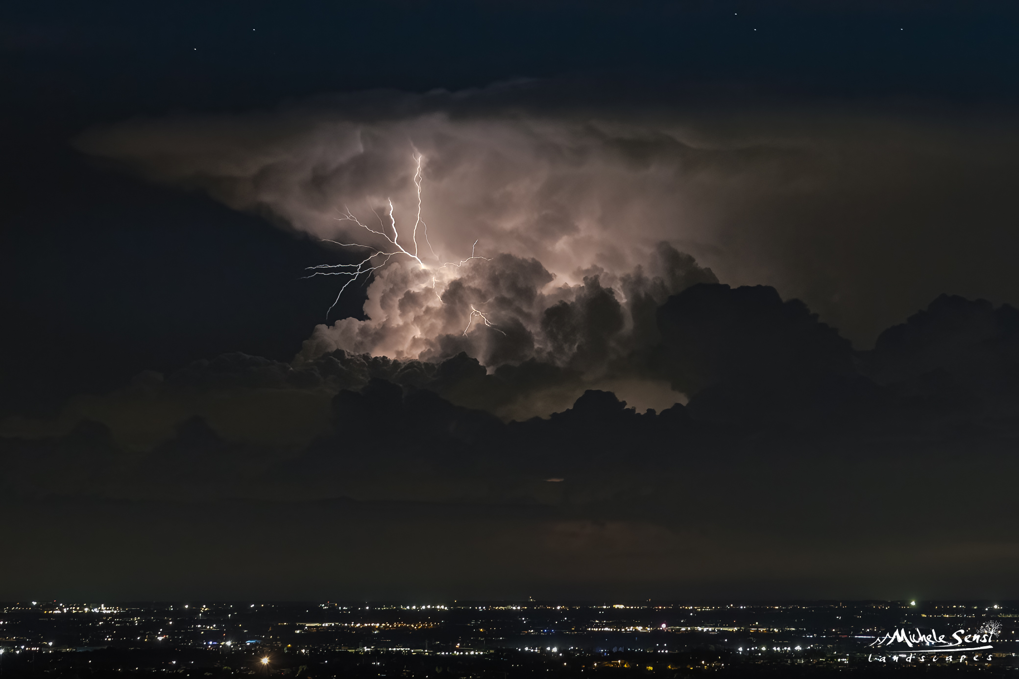 La sera di sabato 21 ottobre è stata una di quelle serate che ricorda più il mese di luglio, ma a tutti gli effetti abbiamo avuto una vistosa attività elettrica in direzione alpi lombarde. Grandi Cumulonembi ad incudine hanno mostrato la loro sagoma tra un lampo e l'altro. Uno di questi "giganti" è stato immortalato dal nostro Michele e ne possiamo cogliere ogni dettaglio, a cominciare dal turbolento camina di risalita dell'aria umida che arriva a toccare la tropopausa a circa 12 km di altezza.