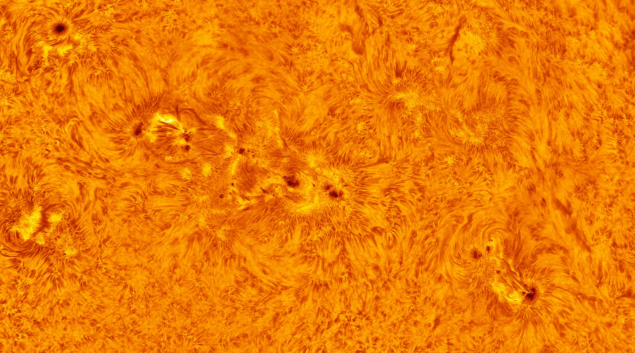 - Macchie Solari: come in questo scatto e sono regioni temporanee della fotosfera che appaiono più scure rispetto alle zone circostanti a causa della loro temperatura più bassa, che è di circa 4.000 K. Queste macchie sono causate da intensi campi magnetici che inibiscono la convezione, raffreddando così la superficie.