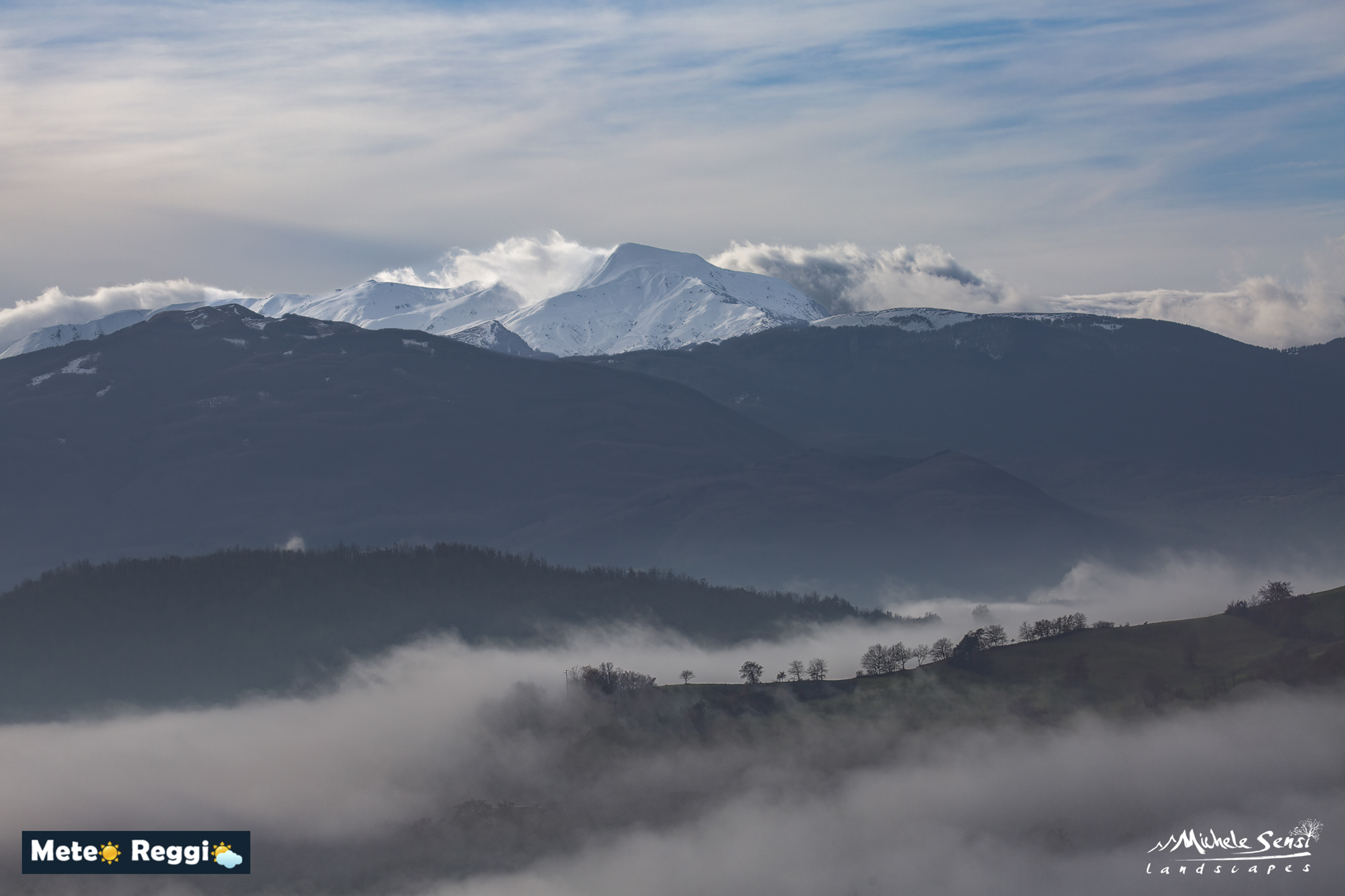 La neve fresca che ricopre le montagne è sempre uno spettacolo e soprattutto è in grado di far risaltare meglio la sagoma del nostro Gigante. Specie in quelle giornate in cui un minaccioso muro di nuvole preme dalla Toscana verso di noi.