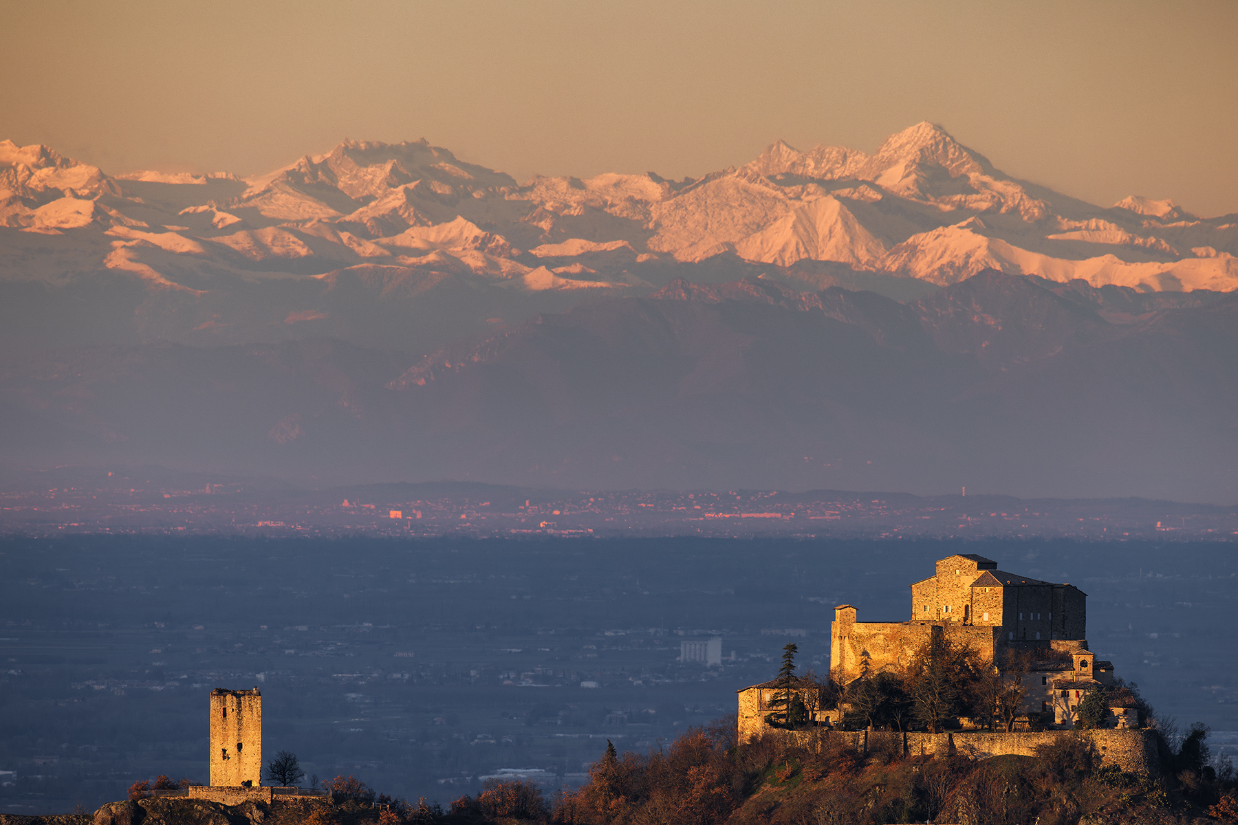 Le Alpi, illuminate dal sole, spiccano nettamente contro il cielo azzurro o al tramonto contro un cielo dai toni caldi. Questo forte contrasto inganna il cervello, facendogli percepire le montagne come più vicine di quanto non siano realmente.