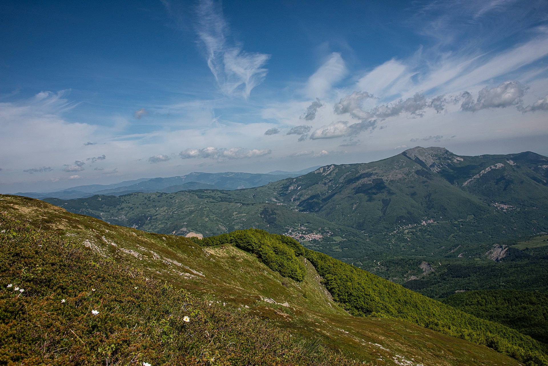 Ci troviamo a poca distanza dall'abitato di Ospitaletto e la cima del Cavalbianco, un angolo non semplice da raggiungere ma di grande soddisfazione per chi cammina fino a lì. Da questa quota che supera ampiamente i 1.700 metri lo sguardo si perde tra cielo e terra.